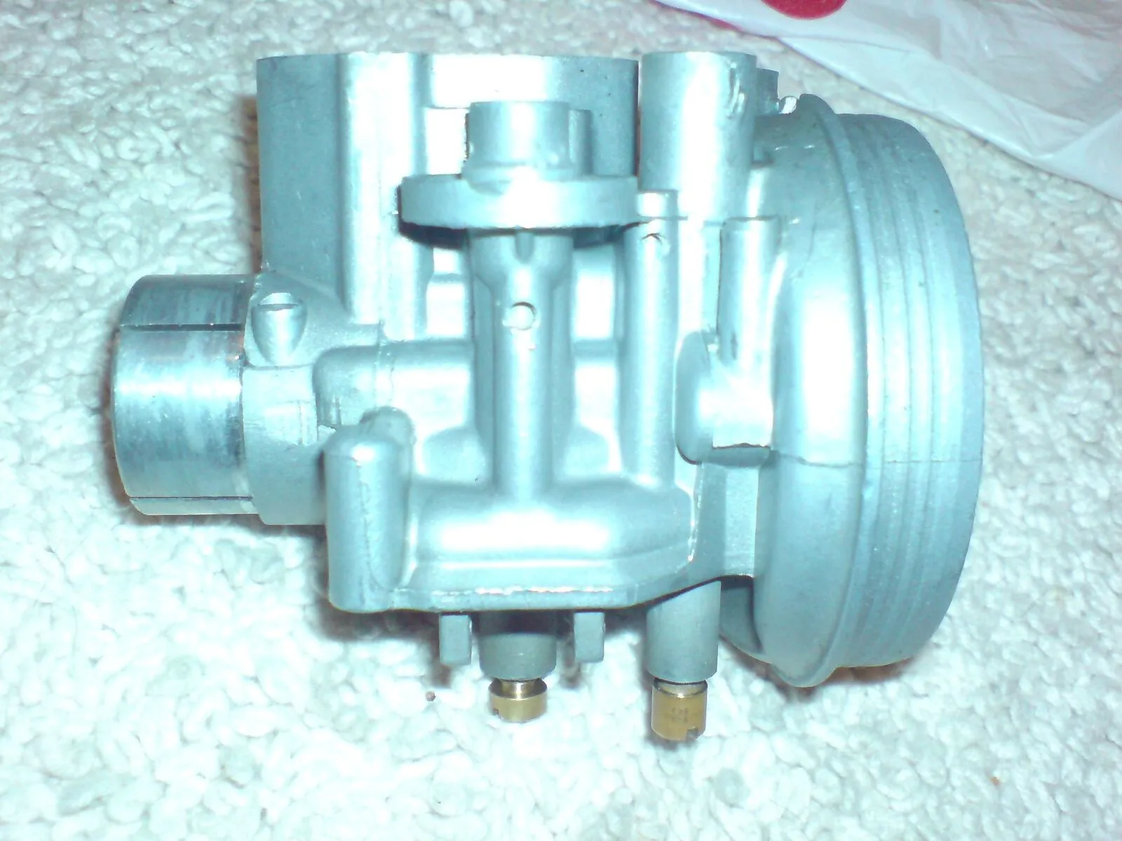 • Für mich sieht die Gemischeinstellschraube alles andere als serienmäßig aus. Ist das nur eine Schlitzschraube? Hol sie mal komplett raus. Die sollte vorne ganz spitz werden. Eigentlich sollte das eine Flügelschraube sein, oder wenigstens geriffelt da man sie auch mit der Hand verstellen muss. Und es sollte eine Feder drauf sein.