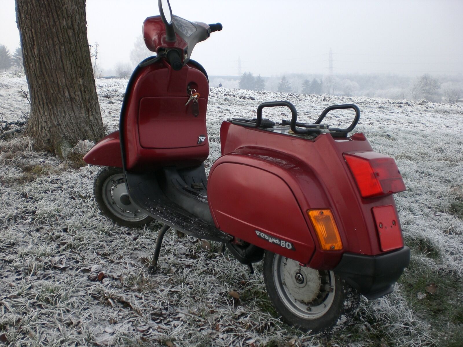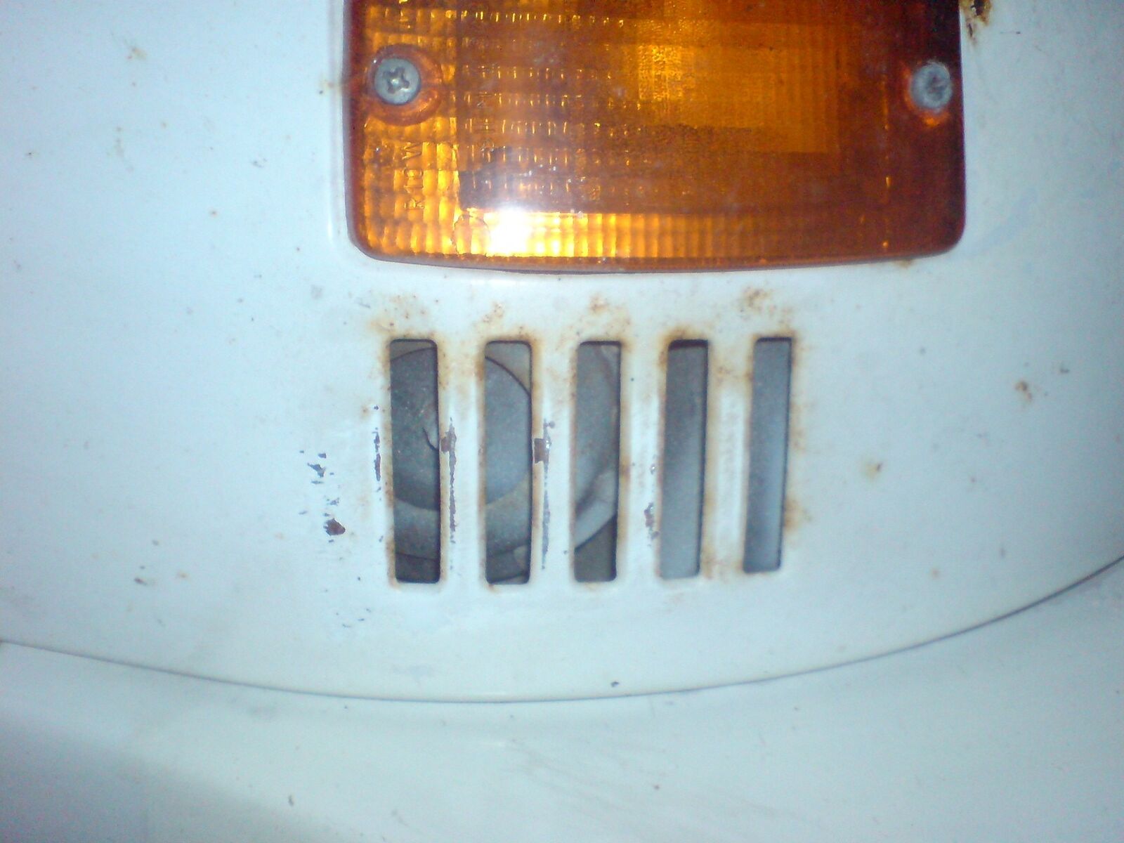Unter der Vespa ist ein ziemlich großer Rostschaden, vorne am...-s****** begriff vergessen-...(ganz vorne überm Rad aufjedenfall), und an den Ritzen für die Luft etwas.