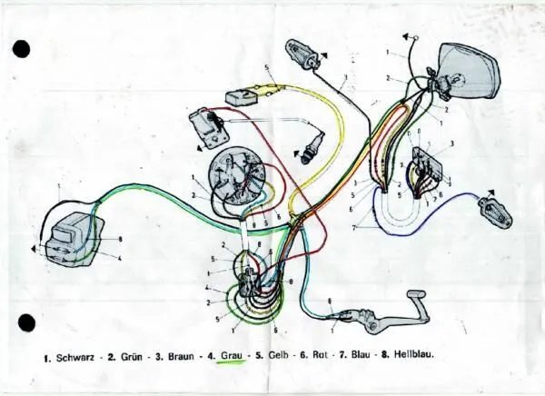 ich habe gestern einen neuen Schalter eingebaut mit Blinker, Licht und Unterbrecher. Es handelt sich um eine V50 Special von 81. Licht usw funktioniert, aber nicht die Blinker. Ist es richtig, dass das gelbe Kabel Strom liefern muss? Weil auf dem gelben kommt nichts oben an.Blinker und Licht sind aber völlig unabhängig voneinander,oder?!