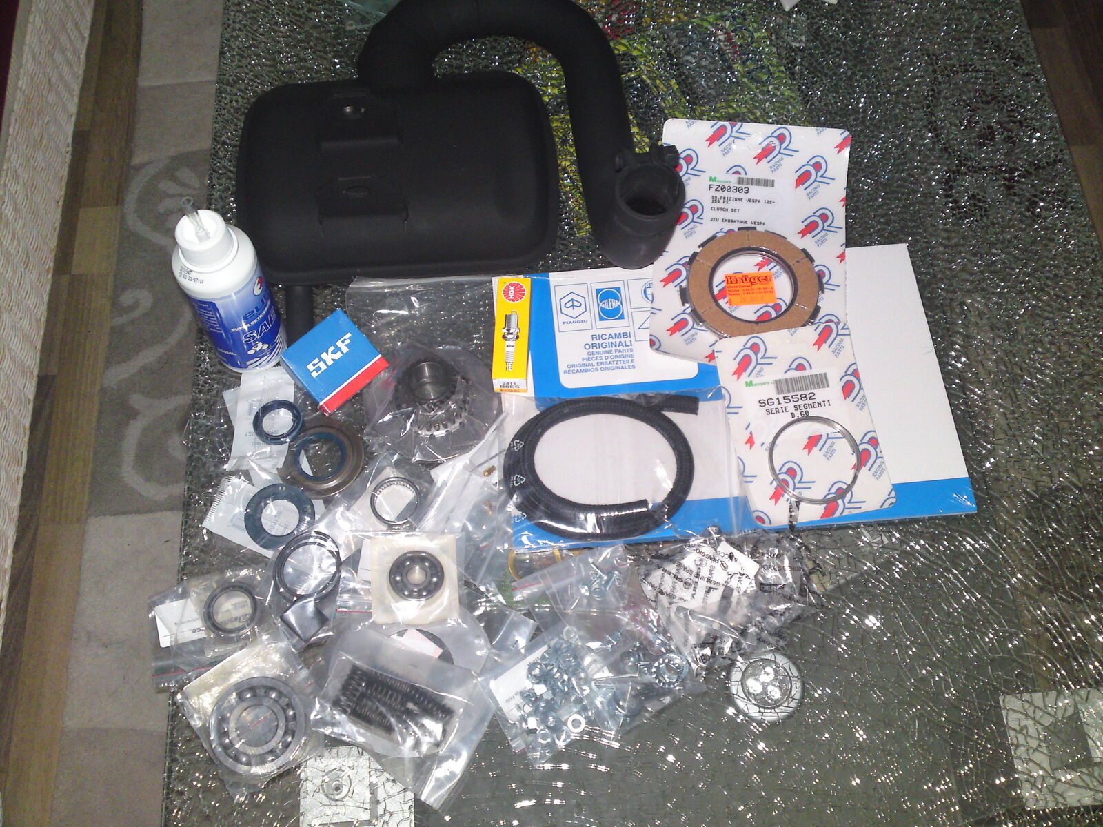 So, heute ging´s weiter. Motor ist jetzt soweit zerlegt. Werd die Tage mal mit PX-Tom in Kontakt treten bzgl. Bestellung und Vergaserreinigung. Werde auch das Primär-Raparaturkit brauchen, habe gesehen, dass eine Feder hinüber ist. Und das Lager hat wohl ein paar Kugeln verloren, ich frage mich, wo die geblieben sind?!? 8|