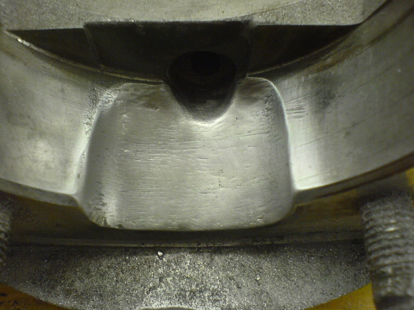 Also ich habe den Zylinder auf den Block gehalten und mit einem Eding die Kanalbreite der ÜS auf den Block übertragen, danach habe ich mit der Fussdichtung auf dem Block angezeichnet wie weit ich nach aussen fräsen muss.