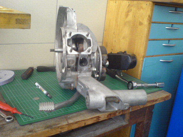 So heute hat mir der Richi, weil der hat ja Ferien, wär ich gern nochmal Schüler, ach nee doch nicht da müsst ich lernen, das Kolbenbolzenlager und das Getriebeöl vorbeigebracht, nun werd ich meinen Motor komplettieren und bei meinem Arbeitgeber [lexicon='abblitzen',''][/lexicon] und den Vergaser dann richtig einstellen, alles auf meinem Motormontageständer, hätt ich halt mal vor.