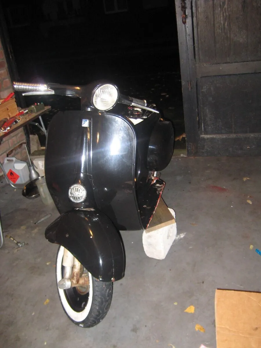 gestern abend ist sie eingetroffen meine v 50 n oder s das weiß ich noch nicht so genau baujahr 63. erste serie, kleine klappe und schwanenhalsrücklicht und natürlich rundes licht. alles original außer der lack. hier und da ein paar oberflächige roststellen aber nichts ernstes das trittblech ist hinten am kicker verbogen(würde sagen, dass es bei einer 44 jahren alten vespa zu verschmerzen ist). gelaufen ist sie kanppe 17.000 km.