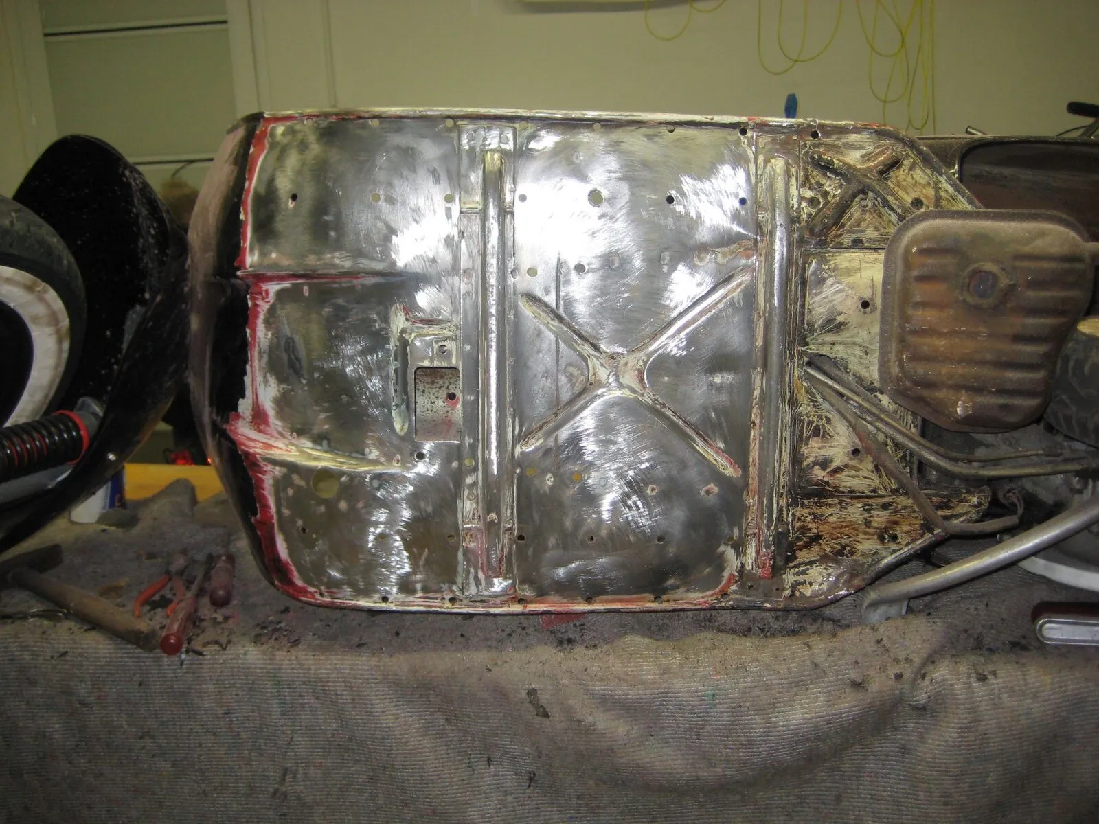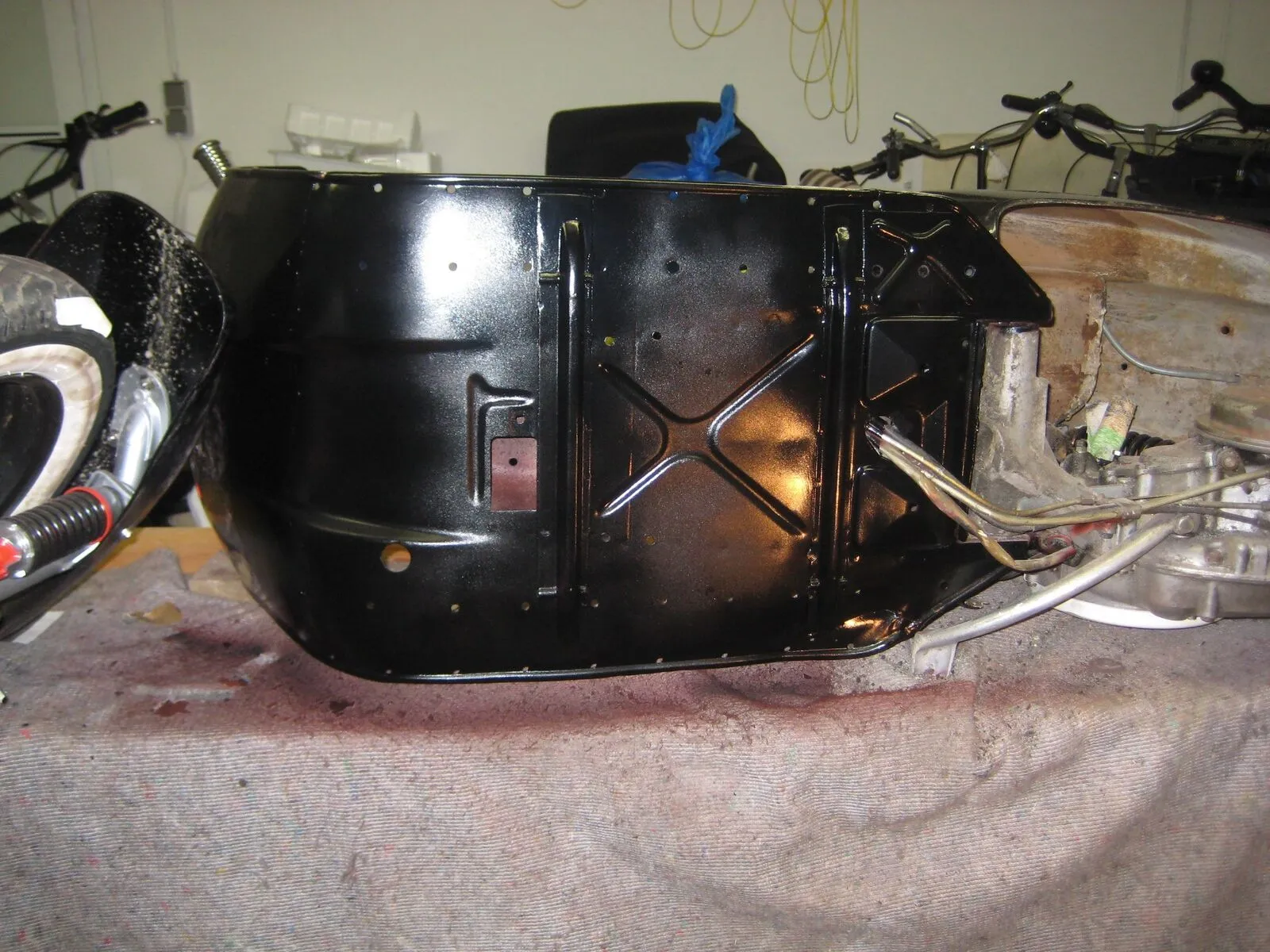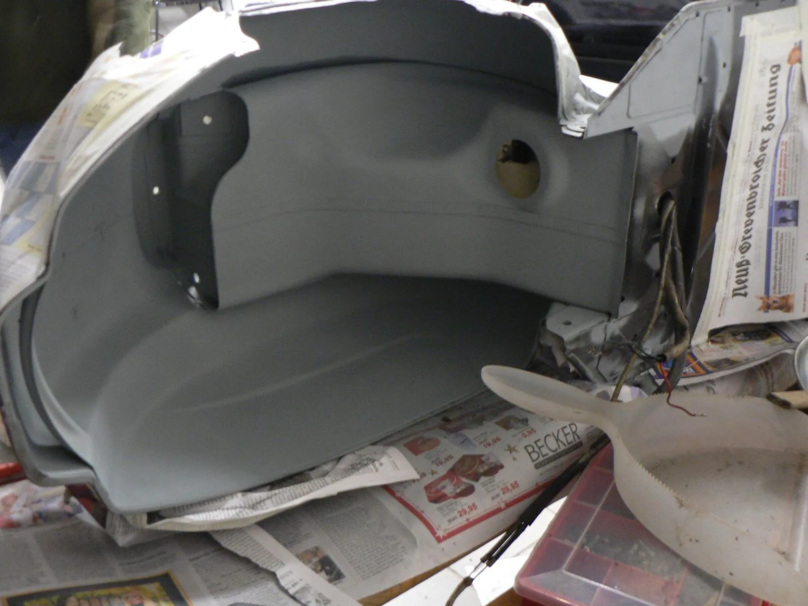 ich habe nur das beinschild,über die trittbleche bis hin zum radlauf innen komplett entrostet, weil dort oberflächig rost war.dann grundiert und mir schwarz beilackiert.