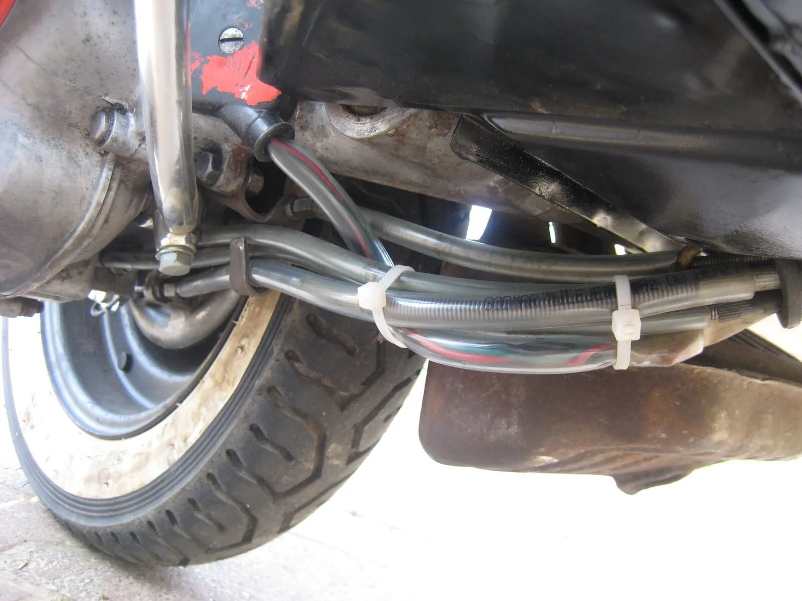 auch heute habe ich das ein oder andere geschafft. als erstes war ich bei meinem hervorragend sortiertem vespadealer und habe dort das dämpfungsgummi, welches auf dem stoßdämpfer(hinten) sitzt, den nippel für das ende des bremszuges(vorne) und eine hd für meine andere vespa gekauft.
