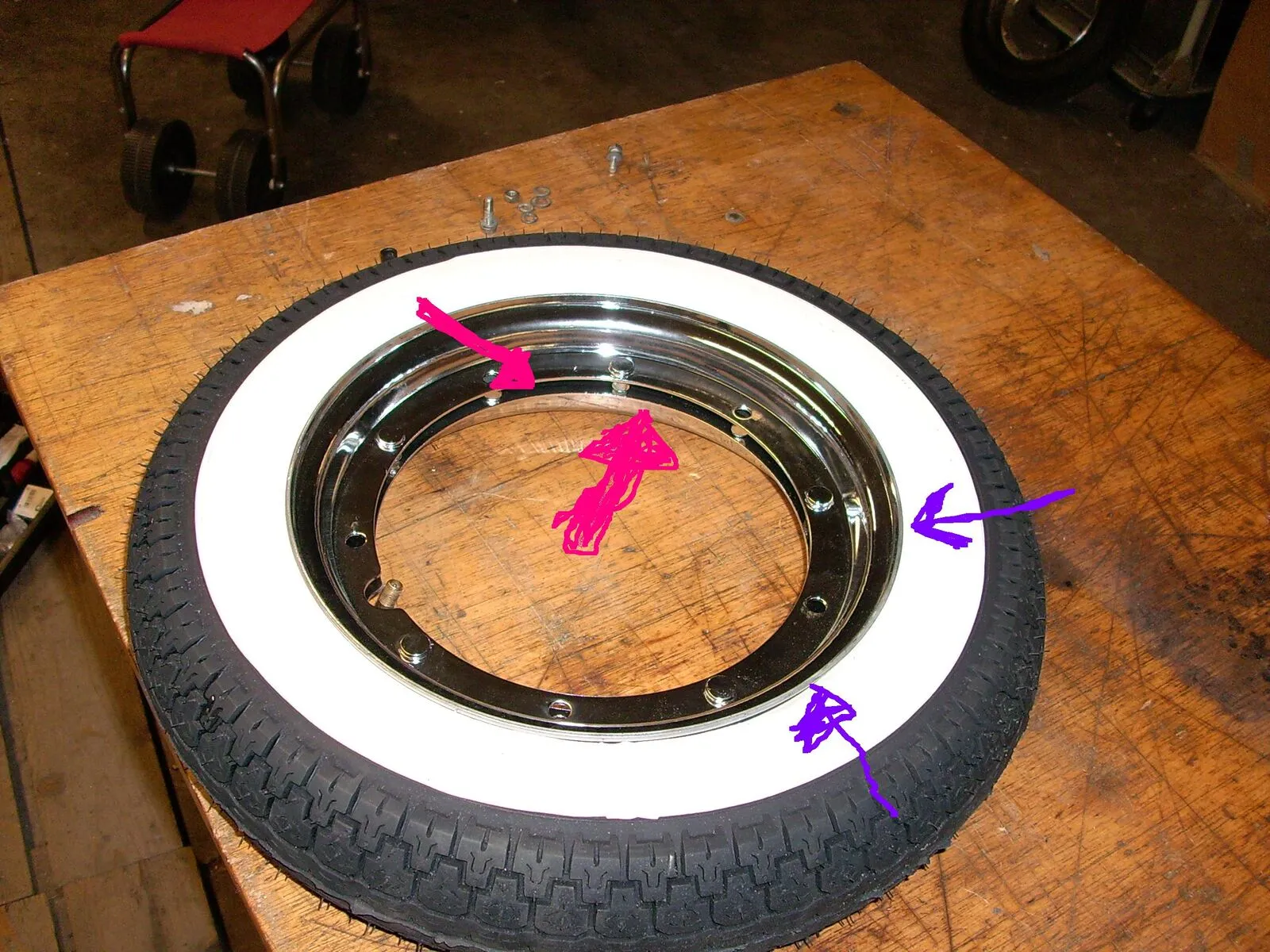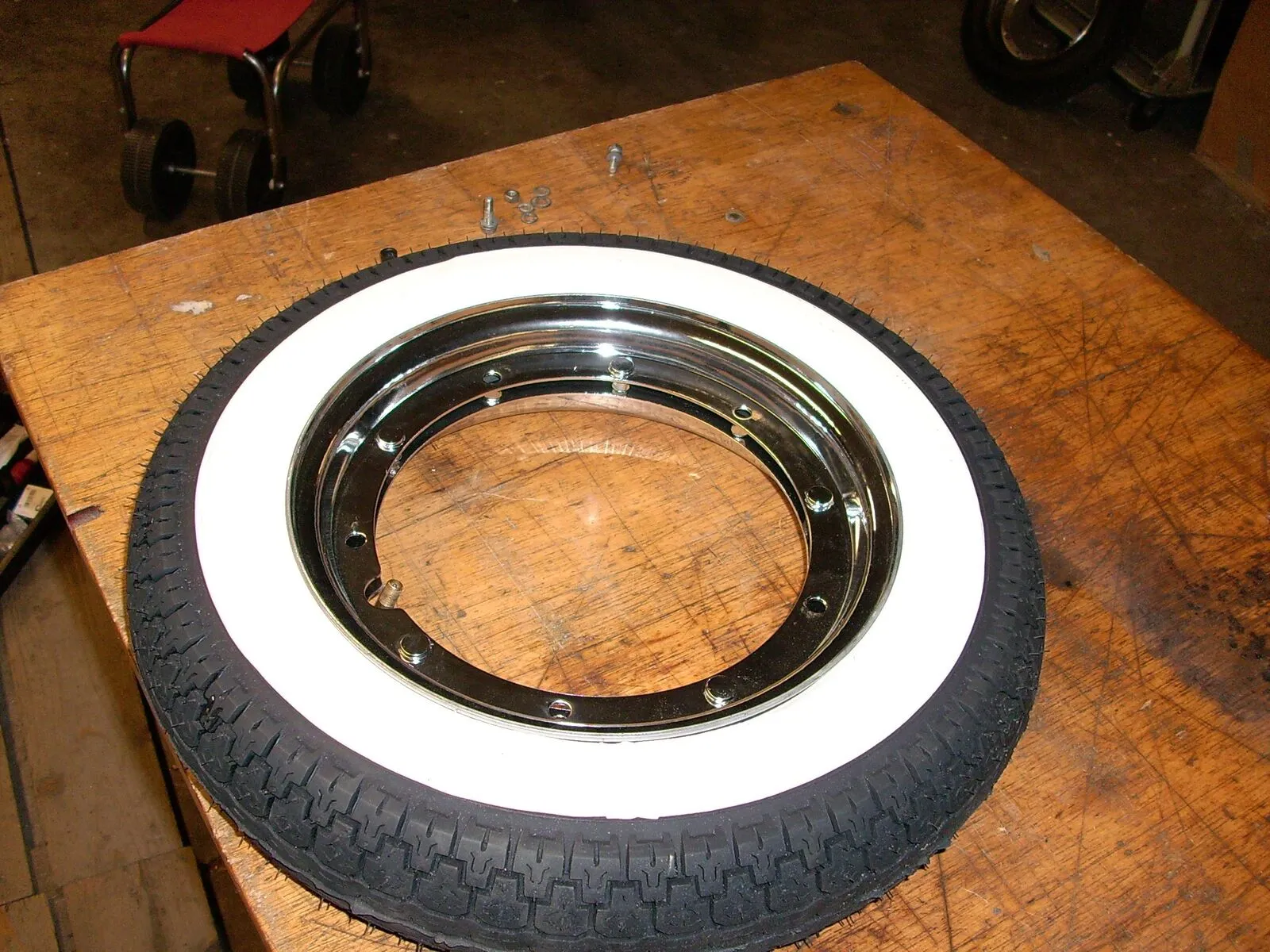 Hier Montage von Weiswandreifen auf Chromfelgen