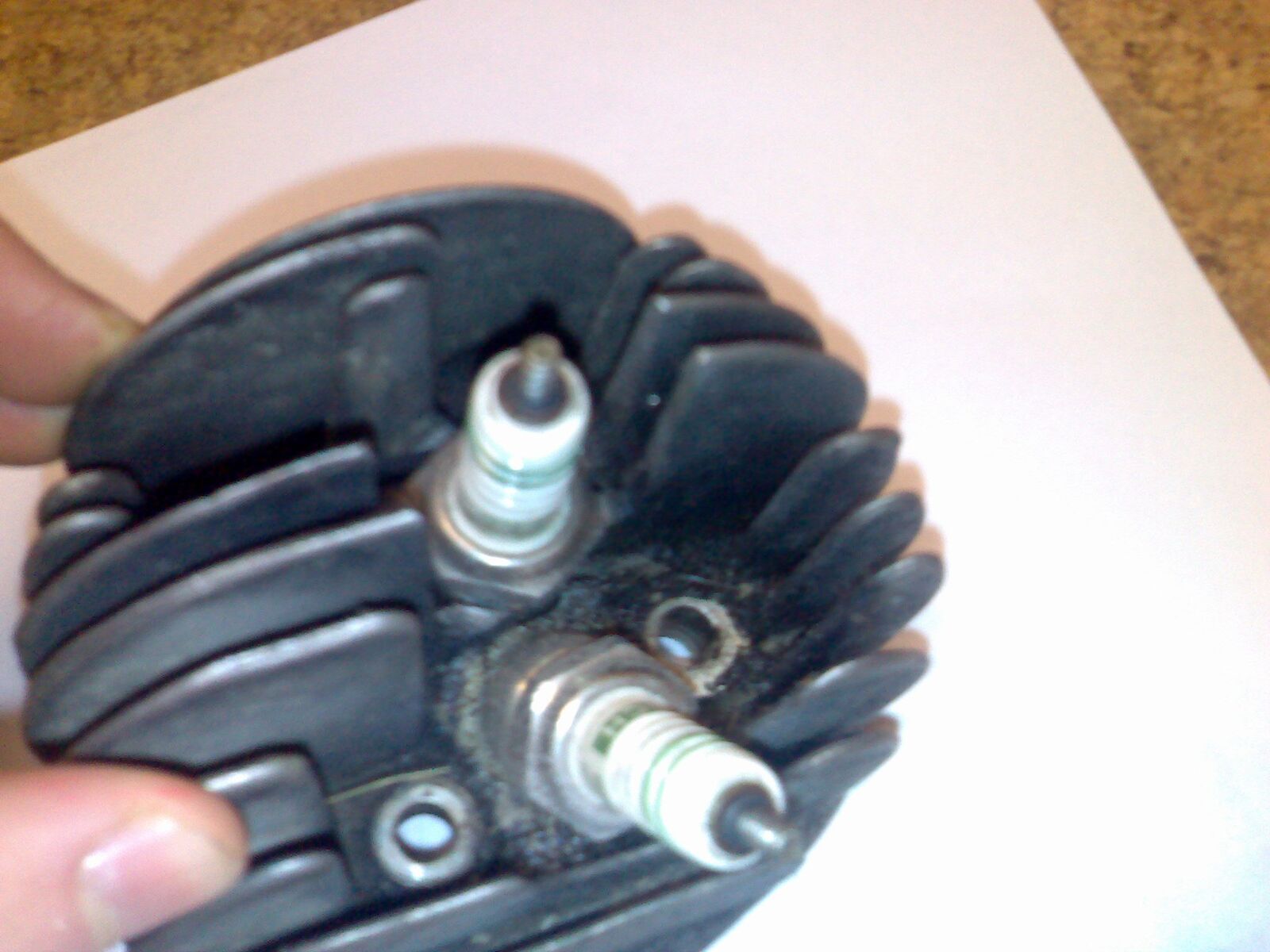 Ich habe bei mir zu Hause einen Zylinder mit einsprechendem Zylinderkopf von DR der zwei Gewinde für zwei Zündkerzen hat. Für was brauche ich diese zwei Zündkerzen? Schaut euch am besten die Bilder an!!