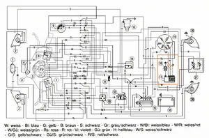 Aber weiter, die Elektronik (bei der PK50XL) ist in die Leitungen der CDI geschaltet. Im makierten Feld werden die weiße und die rote Leitung durch die zusätzliche Elektronik geleitet. Wenn Du allso den ursprünglichen Zustand ( weiß und rot von der Lichtmaschine) in die entsprechenden Stecker der CDI steckst, und die zusätzlicher Elektronik ausbaust, soll es das gewesen sein.