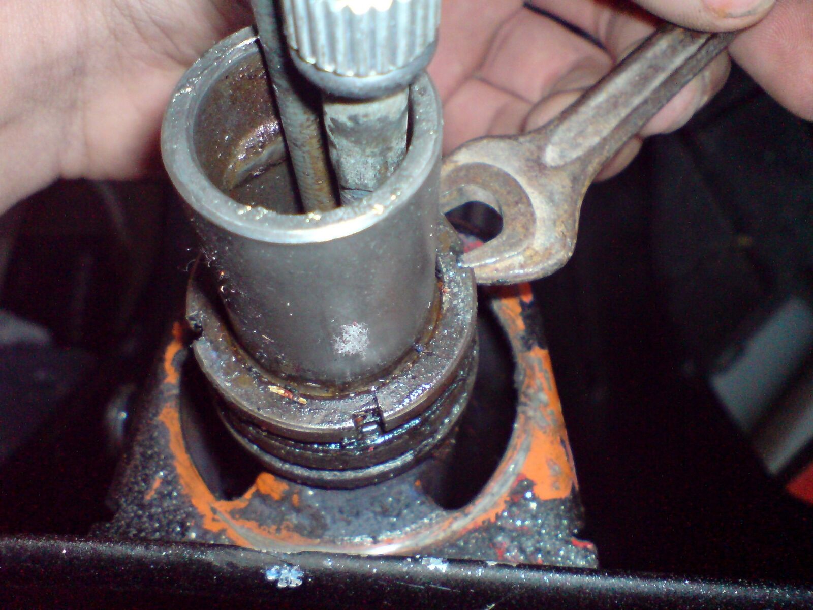 einfach mitm hammer gegenhauhen dann ist das ding lose! dann kann man es einfach abschrauben oder wenns nicht so leicht ist einfach nochmal mit gefuehl gegenhaemmern (empfehle nen kleinen hammer nicht gleich vorschlaghammer:D)