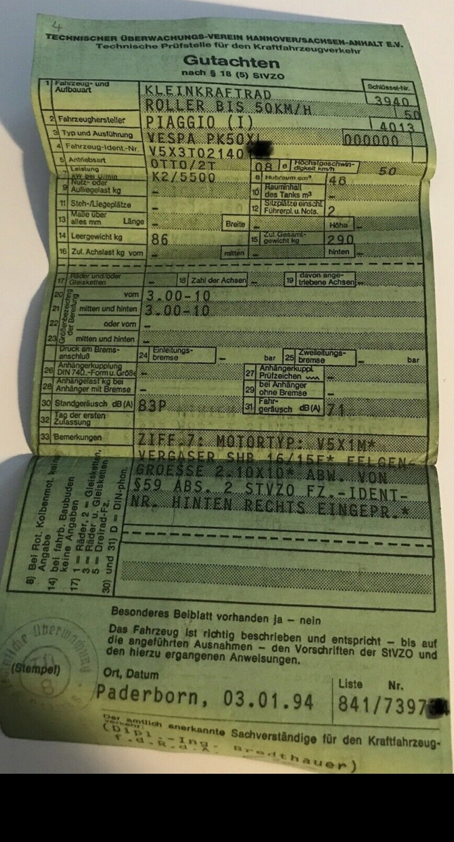 Meine Ape TL6T kam 2004 aus Italien hier her und bekam dann deutsche Papiere vom TÜV.