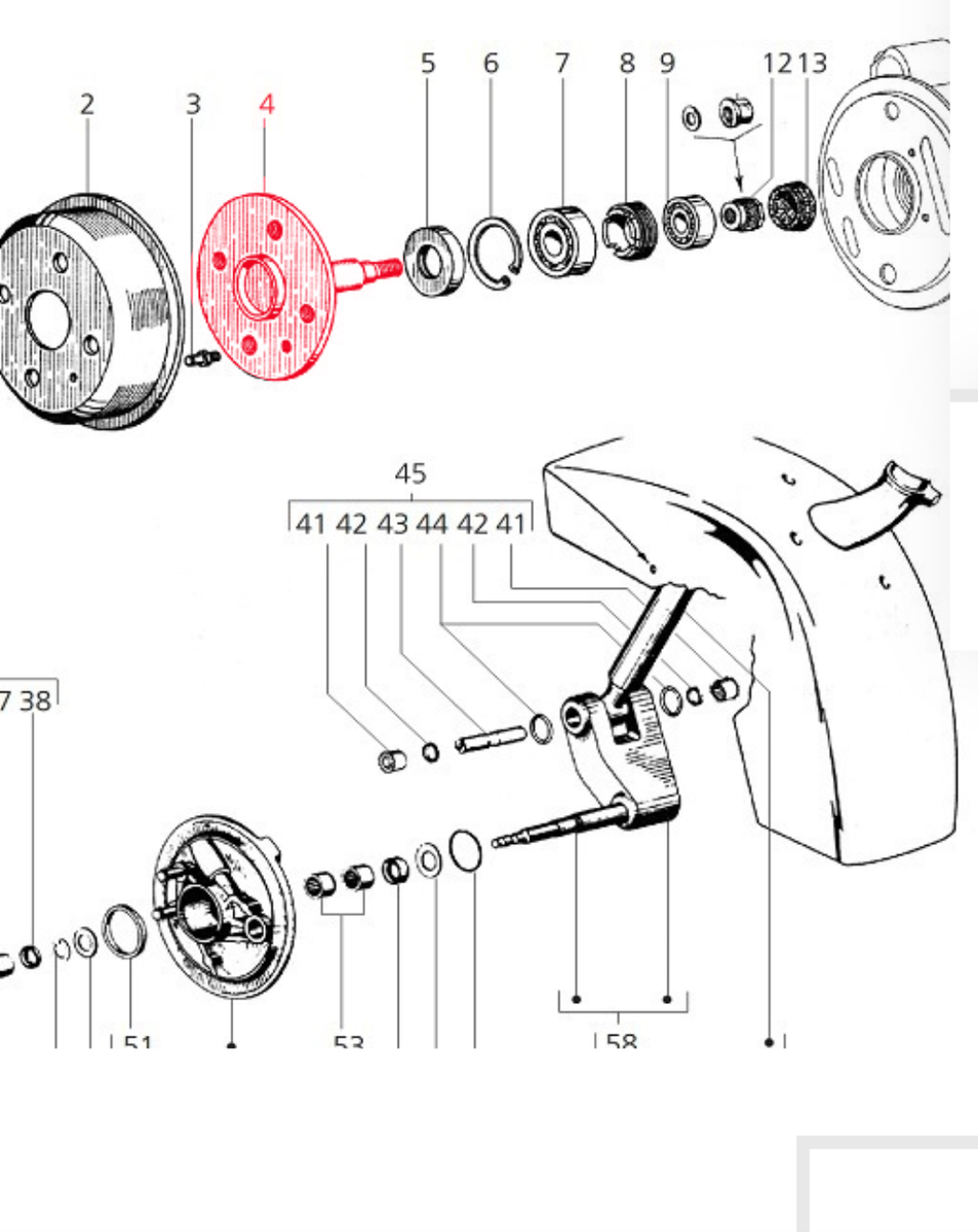 Die Mutter ( zwischen Nr. 9 und 12 ) aka Tachoantrieb, hält die Welle. Wenn die ab ist kannst du die Welle heraus hämmerchen....
