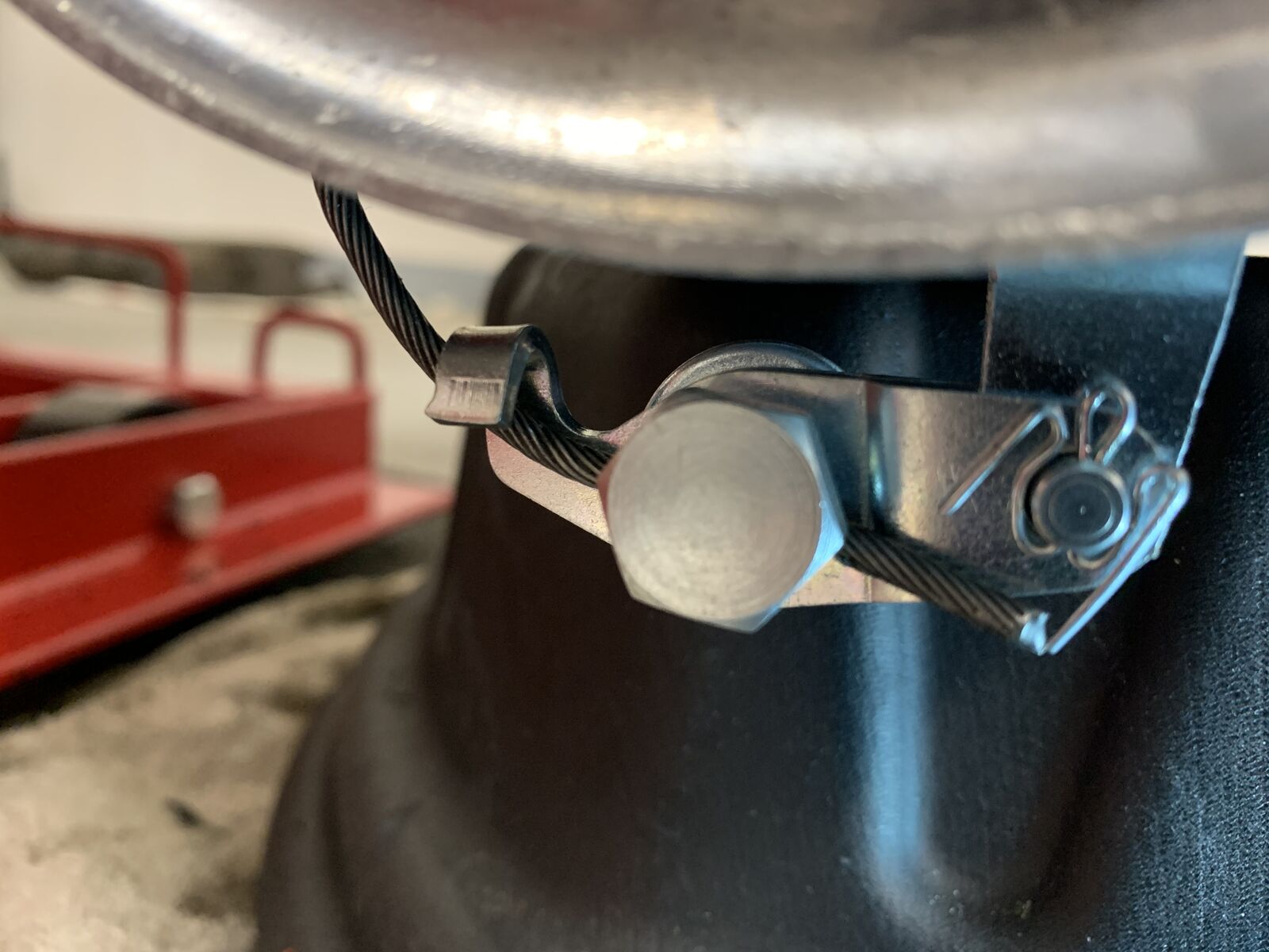 • Der gebogene Haken ist dazu da, um den Überstand des Bremszuges aufzunehmen.