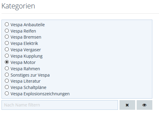 Also mein Vorschlag ist der Bereich: "Vespa Smallframes". Weitere für Large / Wideframes sollen folgen.