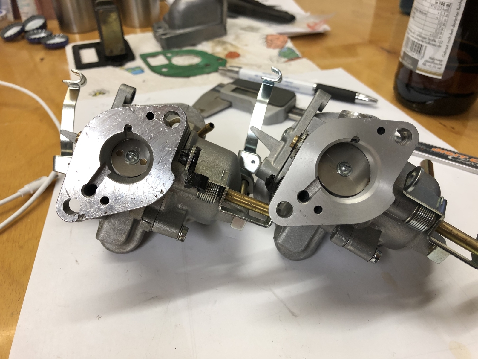 • schön gearbeitet. allerdings erwarte bitte nicht zuviel von diesen aufgebohrten vergasern. die mischrohre funktionieren so nicht wirklich gut. die darfst du natürlich auch aufbohren. und vergiss nicht, dass die vergaser am nebendüsenstrang eh immer ein problem haben, wenn der motor nicht genügend unterdruck produziert. das beste was man mit den dingern machen kann ist hoch und weit werfen. dann machste nen phb drauf und hast ruhe.