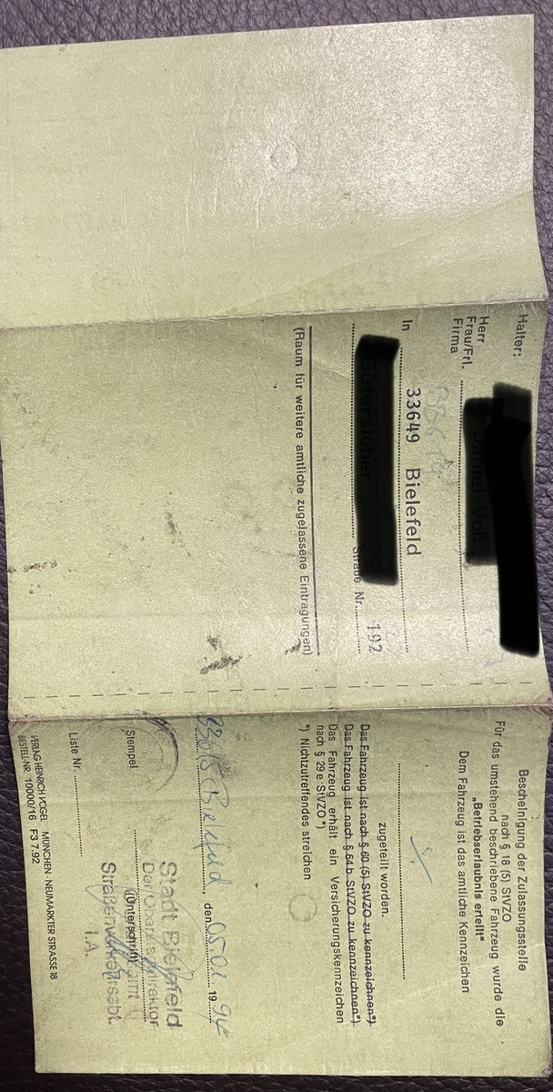 Meine PK und meine Special haben die originalen ABEs als deutsche Erstzulassungen. Bei meiner PK gibt es diese Nummer auch in der ABE und daher weiß ich ihre ursprüngliche Farbe.