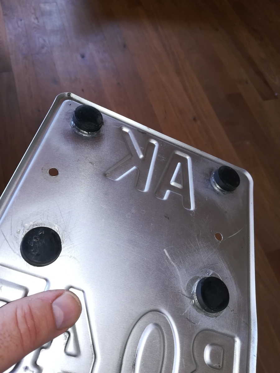 Kennzeichen soll direkt am Rahmen befestigt werden. Als Unterlegscheiben sollen Karosseriescheiben aus Kunststoff herhalten.