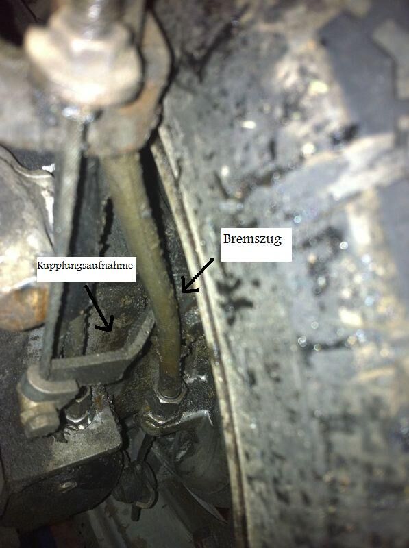 ... gehört der Zug der Fußbremse vor oder hinter die Kupplungsaufnahme? Gehe davon aus daß hier der Hund begraben liegt, da beim Kupplen die Aufnahme an den Bremszug schlägt.