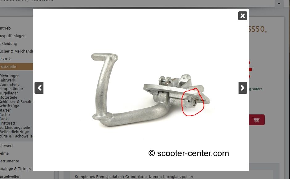 Am Bremspedal bei den Fuffis ist AUßEN ein kleines Loch, das aussieht, als würde da ein Splint oder so durch gehören.