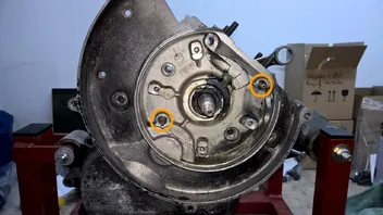Habe ich da irgendwo eine Schraube oder einen Sicherungsring vergessen? Ich kann nichts finden. Das einzige was mich verwundert sind die beiden Bolzen hinter der ZGP. Im Foto "Motor_rechts" orange markiert. Hier habe ich die Muttern entfernt, aber die Bolzen scheinen nicht bis auf die andere Hälfte durchzugehen.