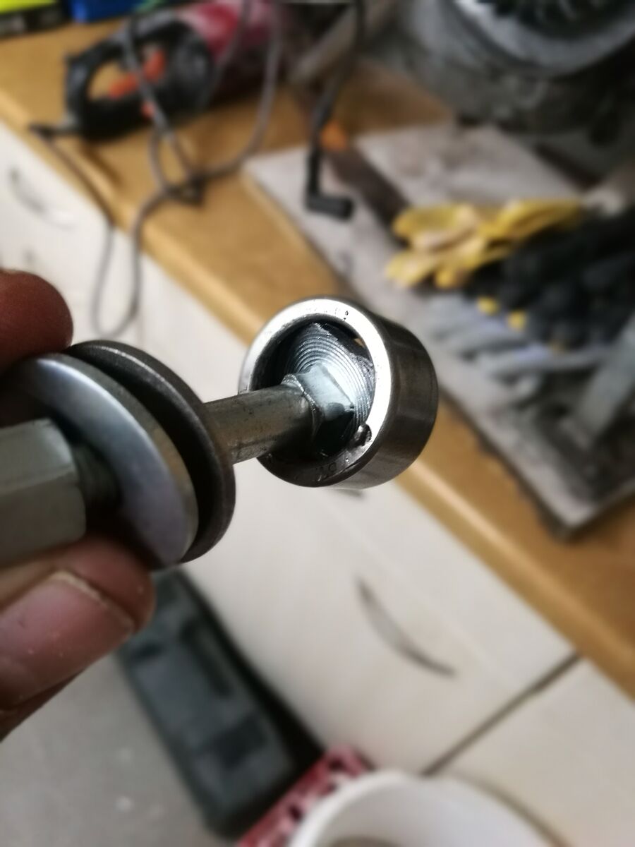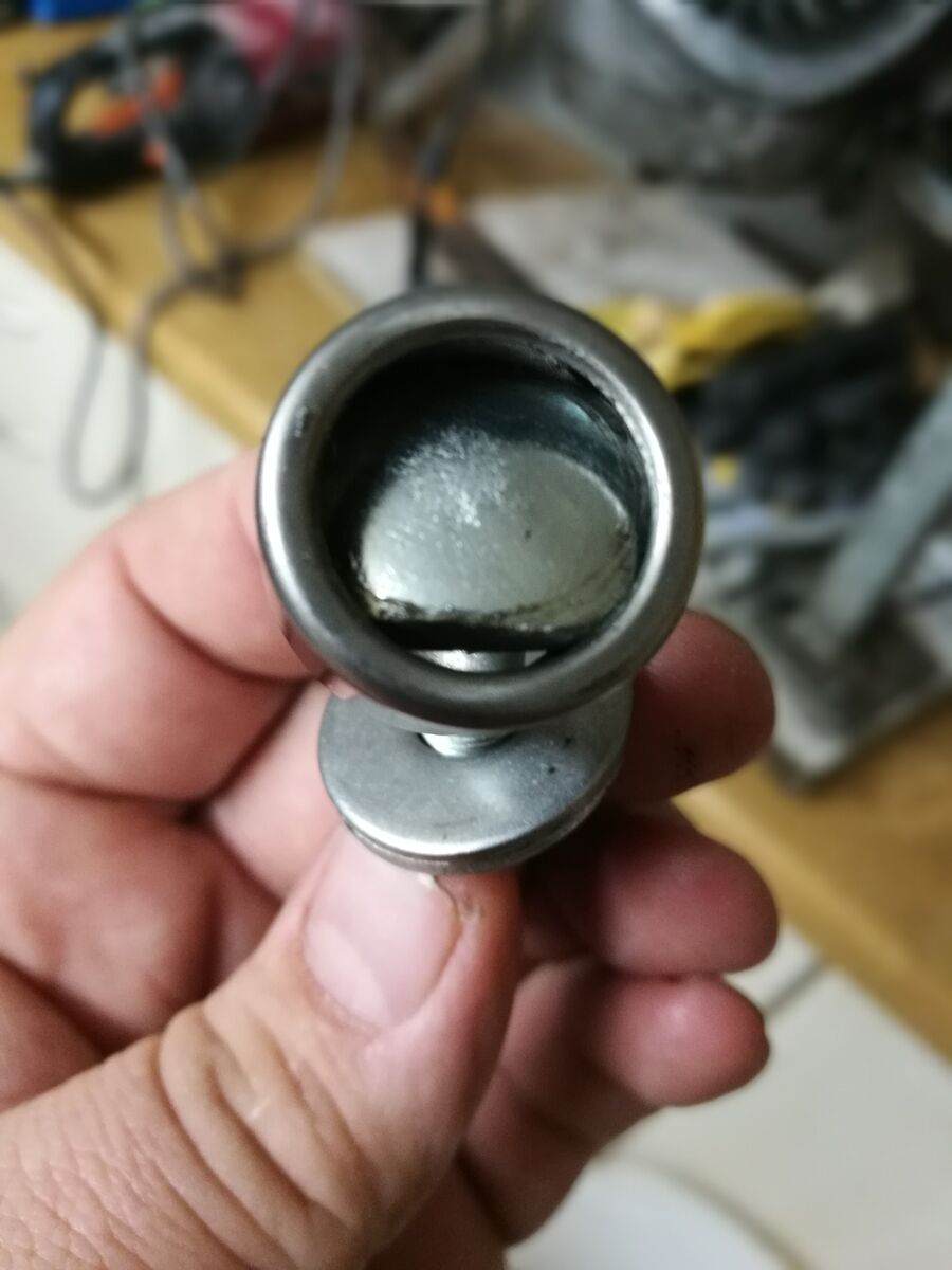 • richtig , der Innenteil des Lagers lässt sich leicht entfernen ,Länge 45mm und 8mm metrisch , der Pilzkopf oben hat den Durchmesser von 18mm (glaube der Kopf ist genormt wenn ich.mich nicht irre)