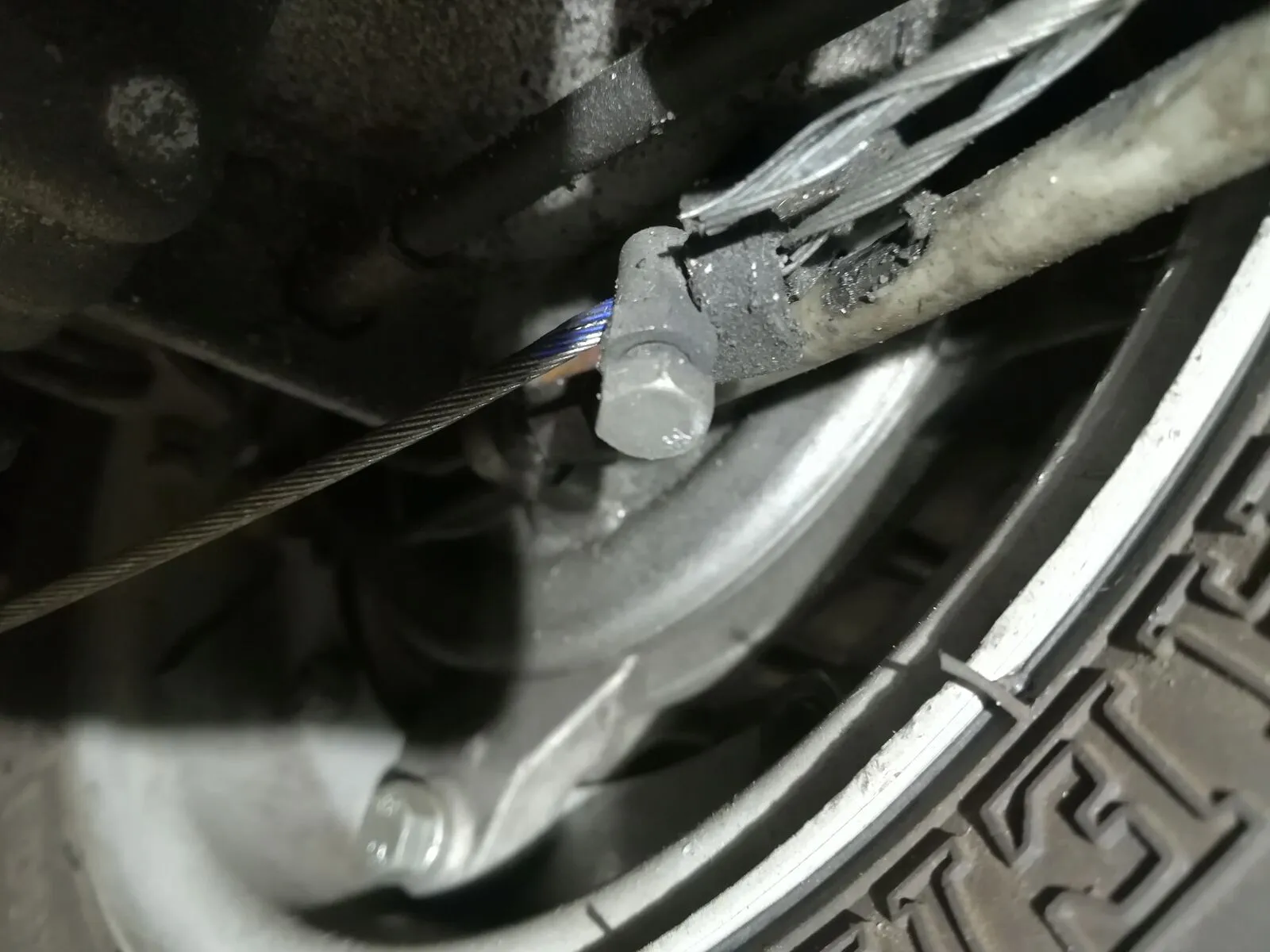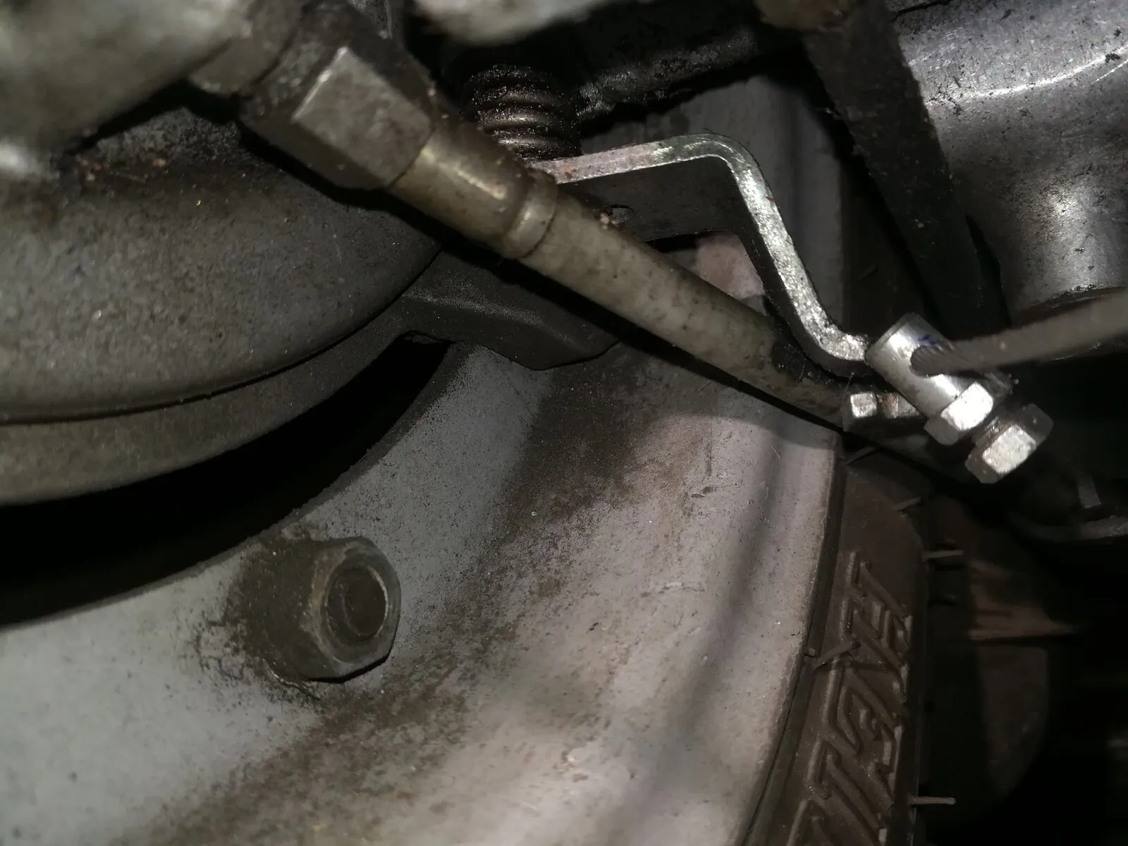 Ist etwas schmutzig und ölig. Die Stelle am Bremszug sieht man aber ganz gut, denke ich.