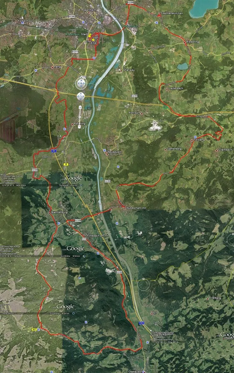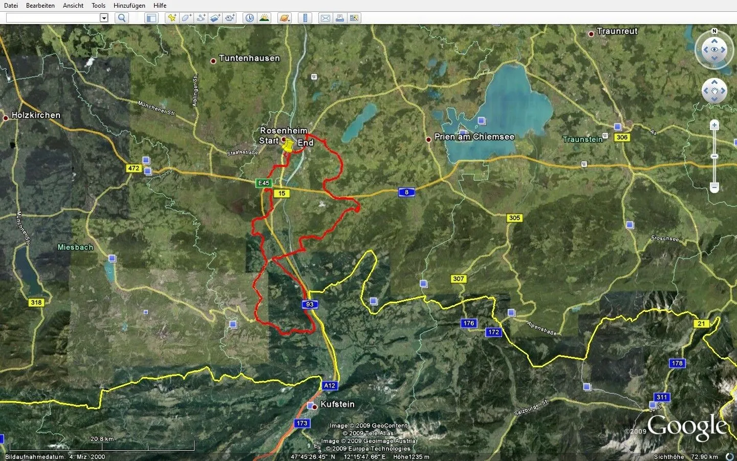start wäre in rosenheim am max-josefs-platz, und die route würde uns über einige kleine straßen zum chiemsee und drum herum führen.