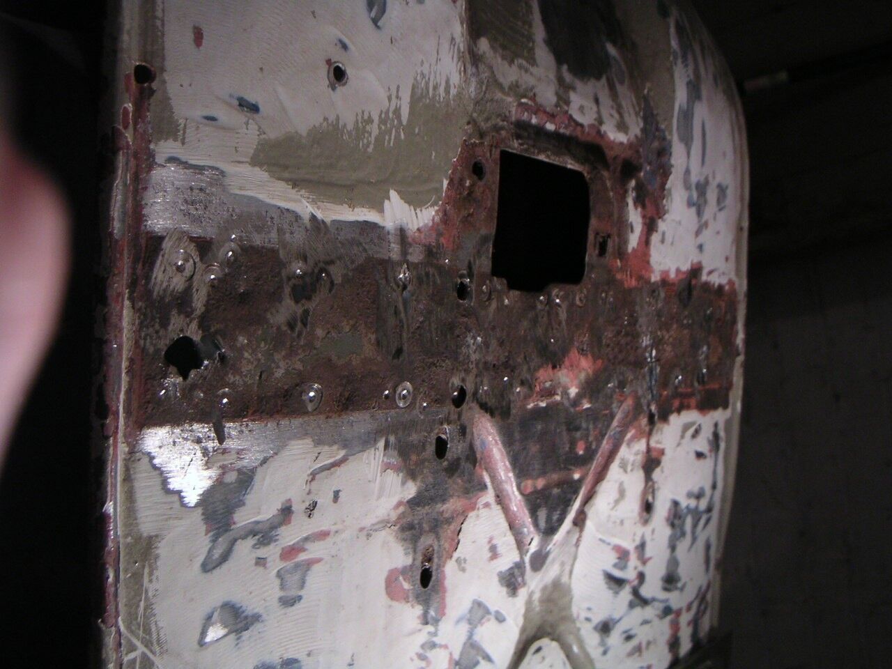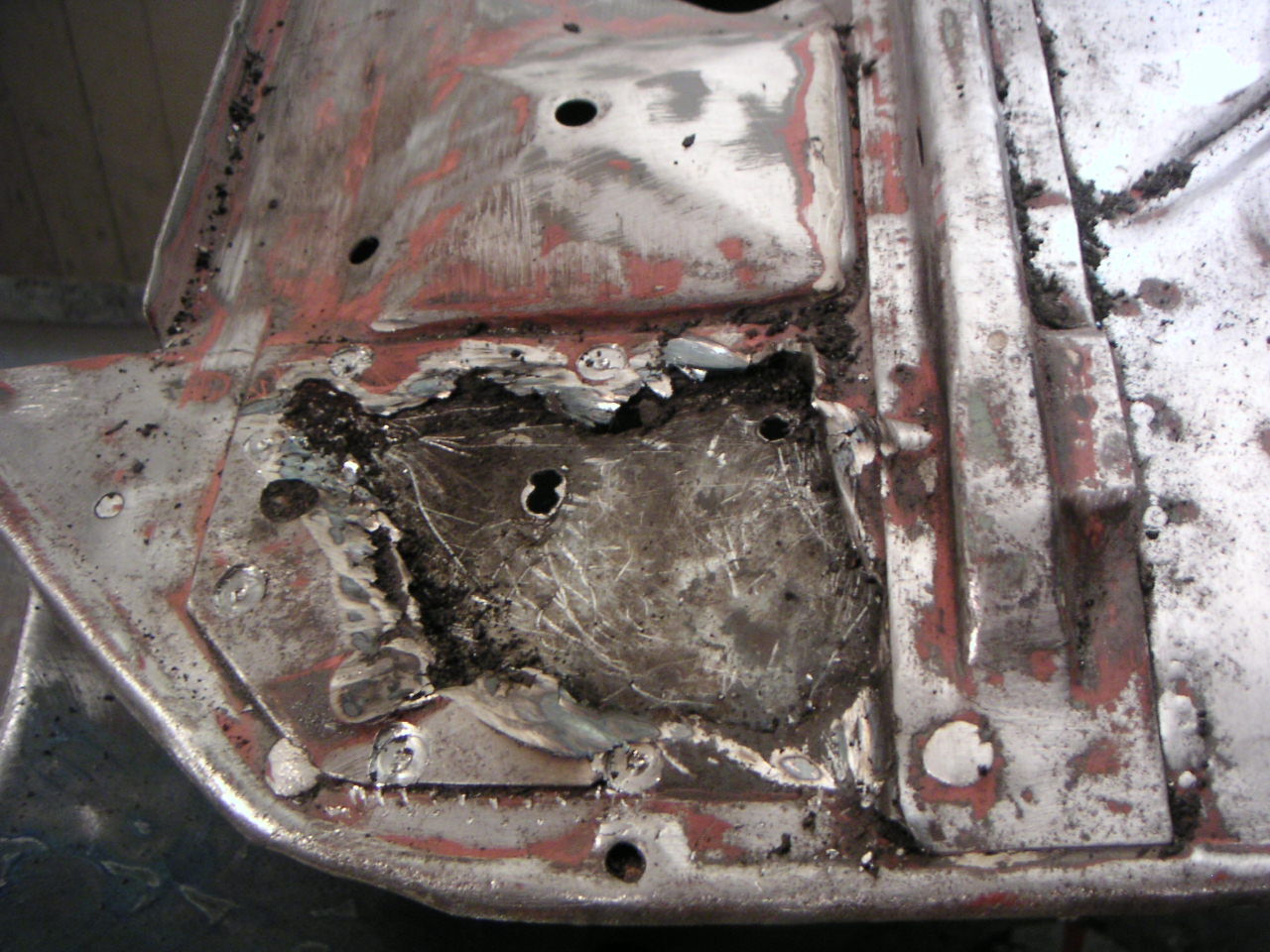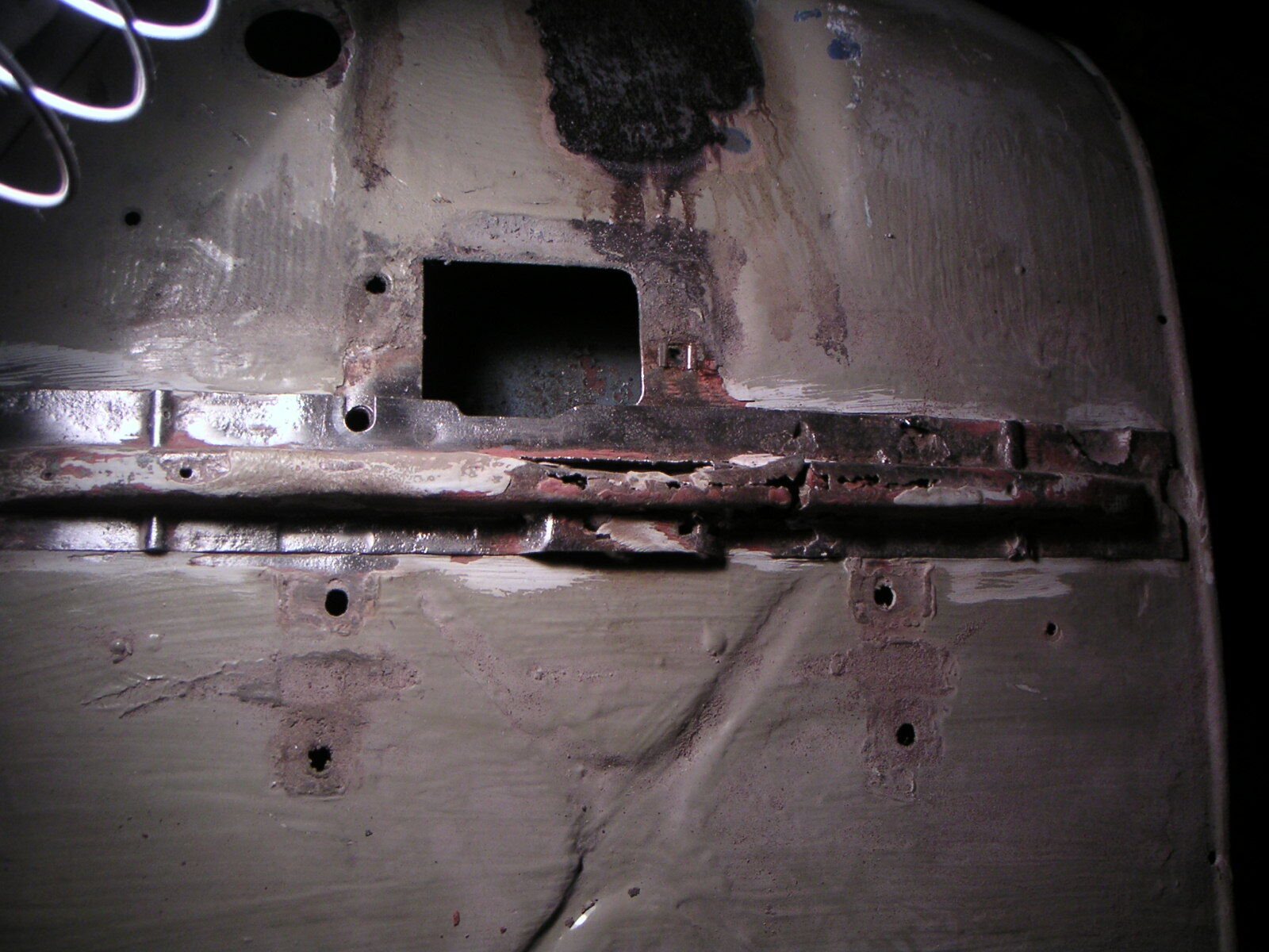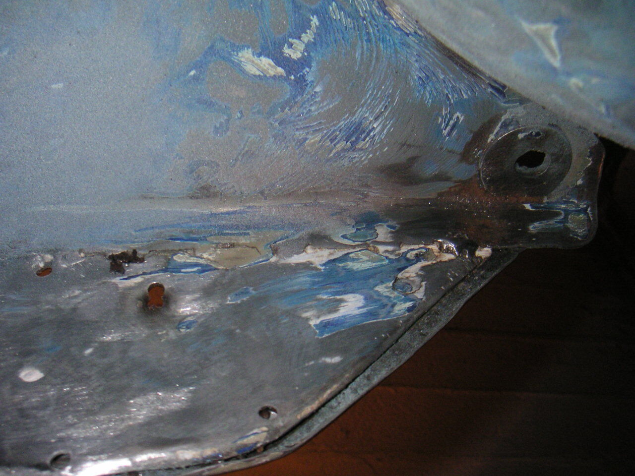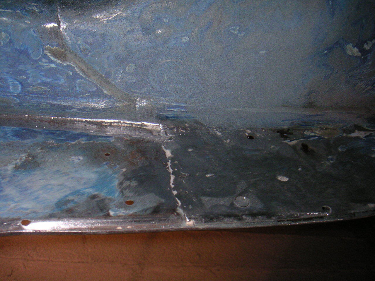 Zwischen den Blechen ist wenig Rost, aber umso mehr trockener Drec, Spachtel und Epoxy ...