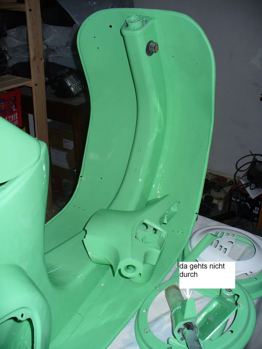 ...sie ist wieder da. meine kleine meine süße mein baby meine vespa und sie ist neu gekleidet. sieht ganz gut aus find ich. Und dafür dass geschweißt geflext und neue teile angeschweißt wurden und sie lackiert wurde und vieles mehr sind 180 euro meiner meinung en guter preis... . es sind zwar hier und da ein paar tropfen aber nur klein und vllt auch mal en staubkorn aber eigentlich nur an stellen wo man es eh nciht sieht im zusammen gebauten zustand.