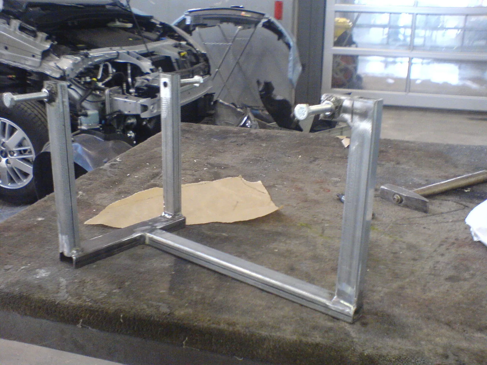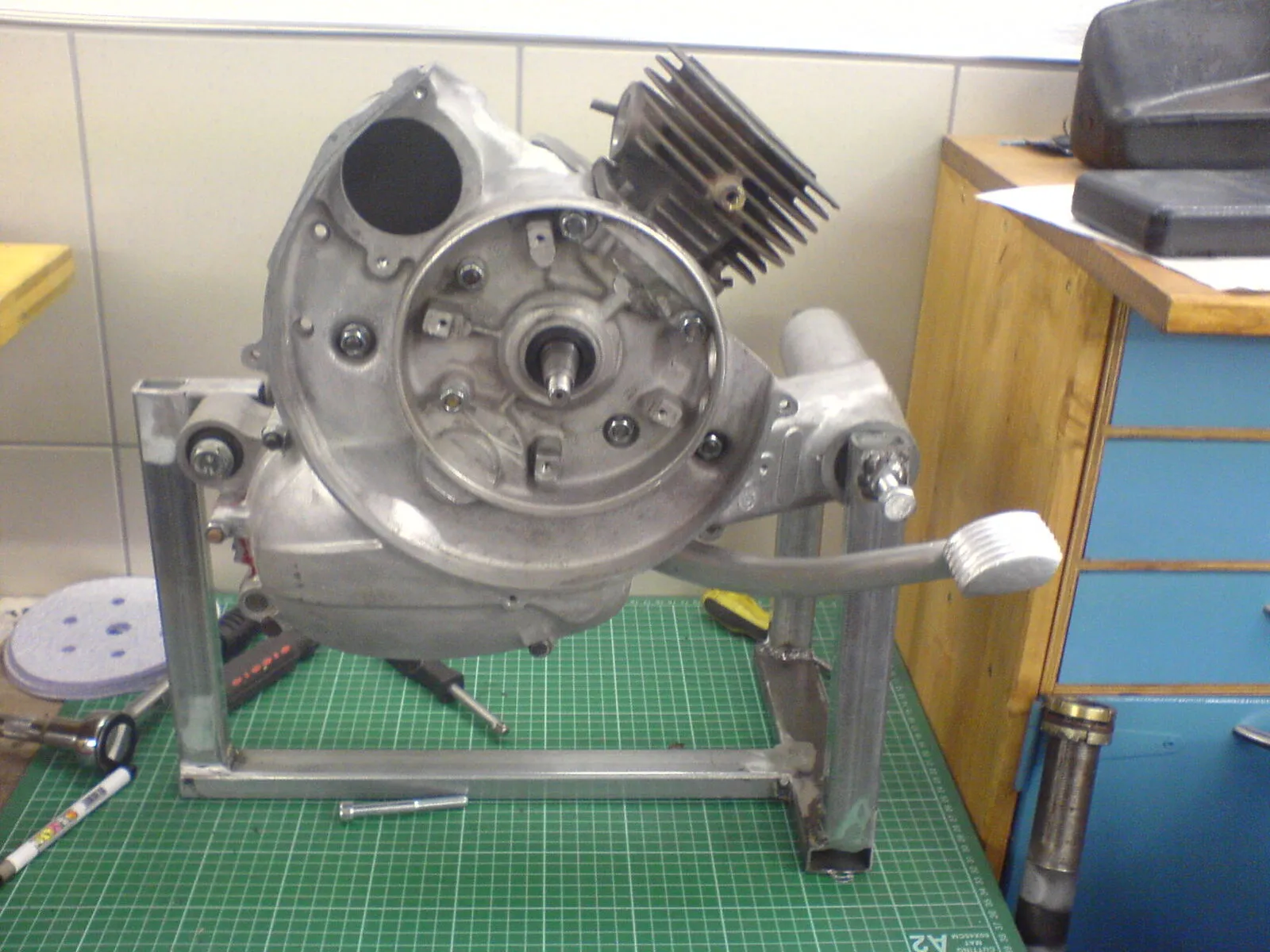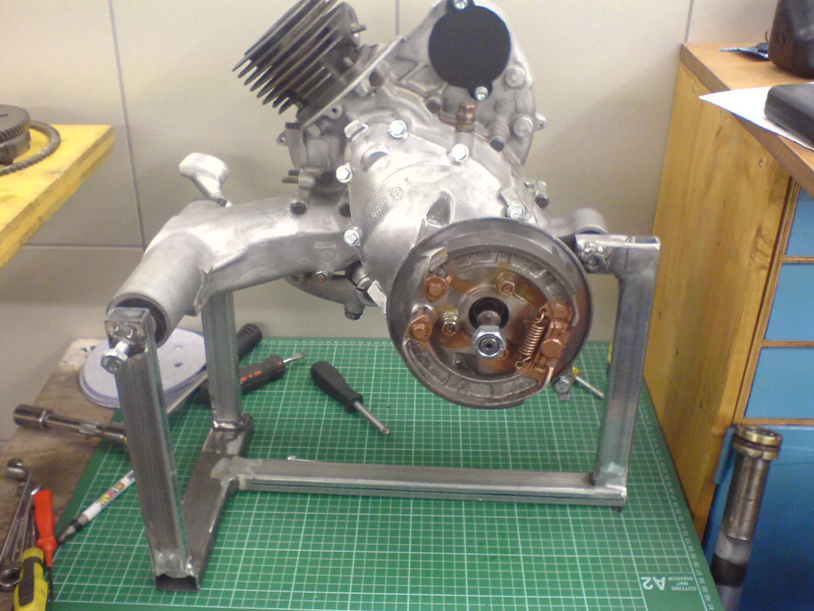 Juhu, der Gandi hat mir grad ein Bild gesendet, er hat heute in einer Stunde einen Motor Montage Ständer gebaut! Jetzt werden wir dann bald anfangen den Motor zu machen!