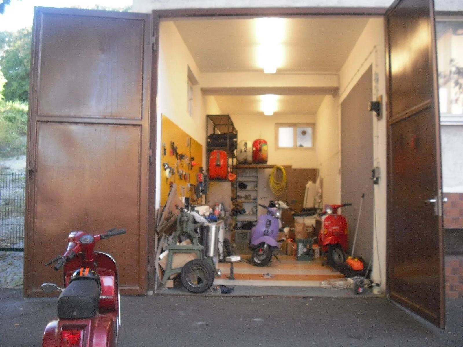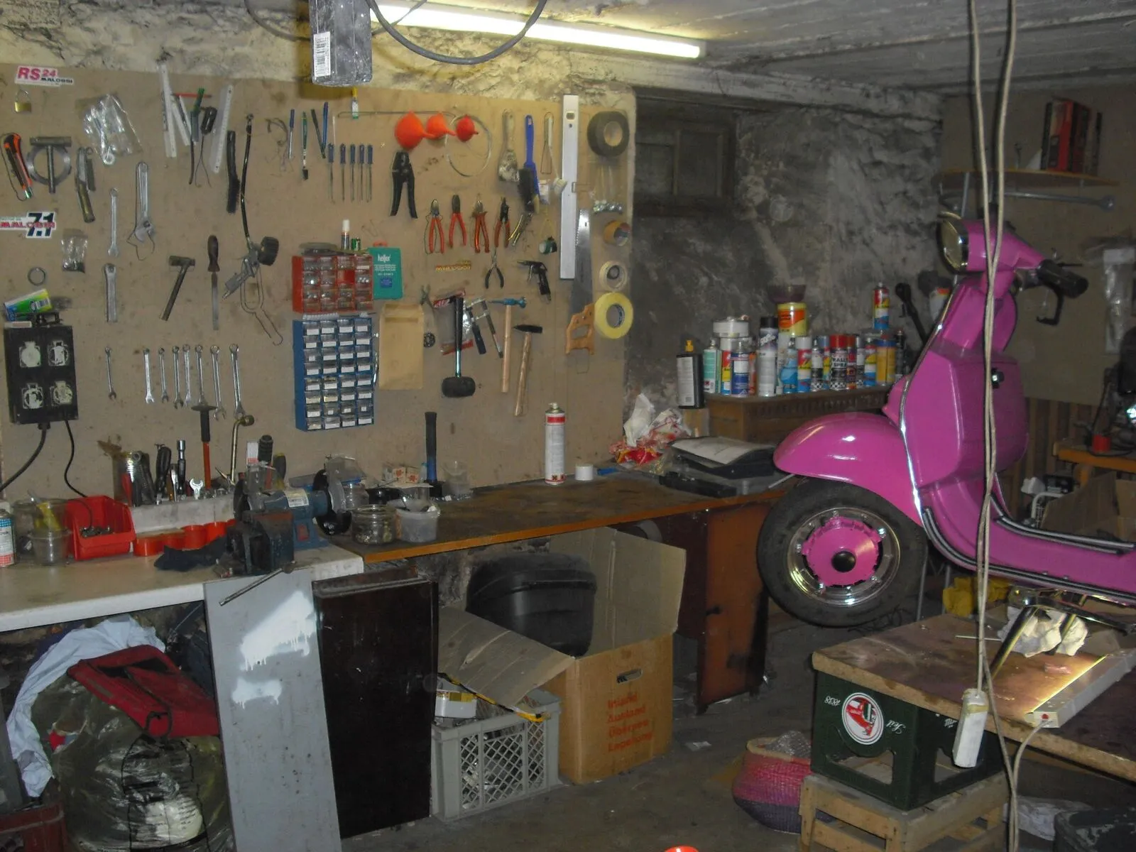 Mein Kumpel hat sich scheiden lassen und hat dadurch mehr Platz im Haus, seit die Frau mit 2 Kindern raus ist.Kurzer Hand wurde ein Kinderzimmer mit Außentür zum Hof als Garage umfunktioniert.Da werden wir ab nächster Woche 2 PXen zerlegen, lacken und die Motoren ein wenig umgestalten...