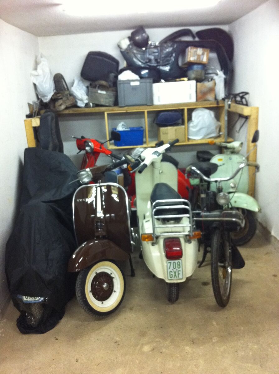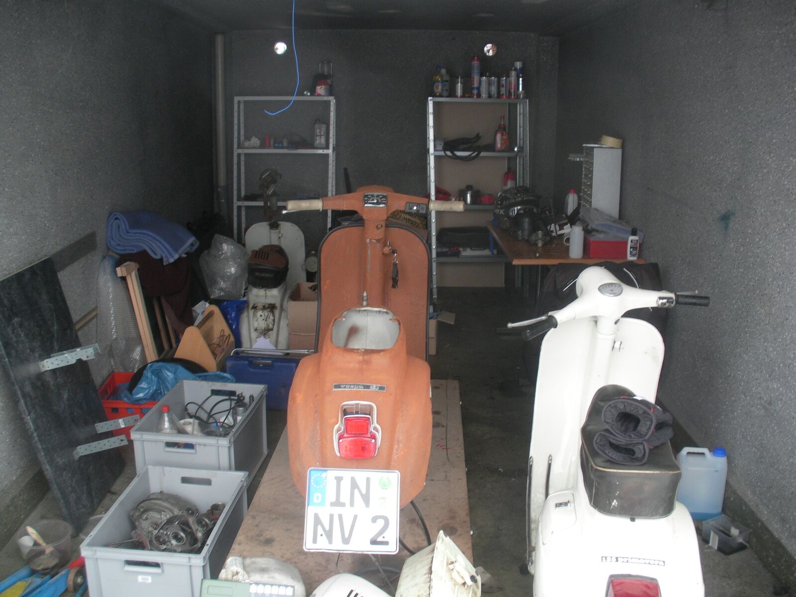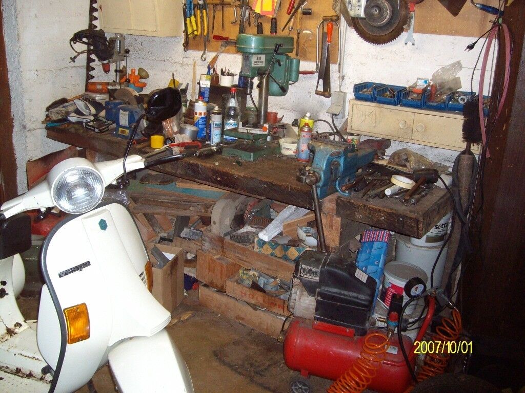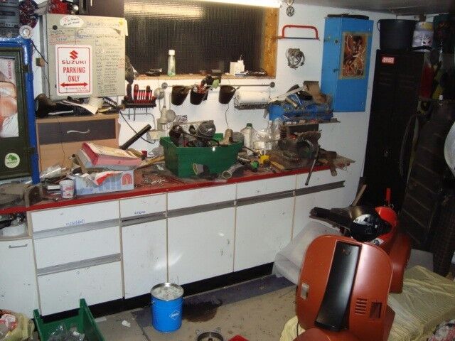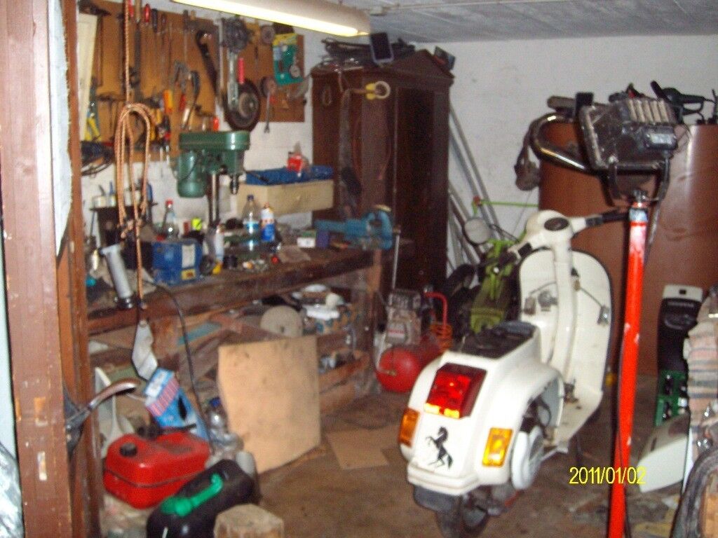 Ist quasi eine 3 geteilte Werkstatt, einmal Rein der Werkraum mit dem ganzen Werkzeugkrempel. Dann hab ich mein Teilelager und nebenan noch den Rollerlagerraum.