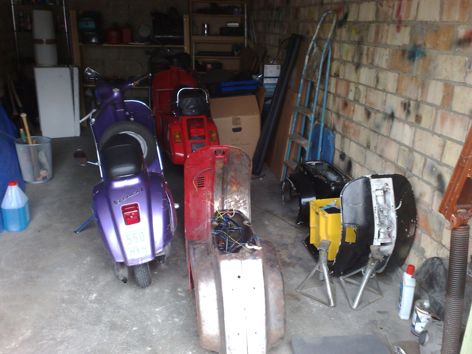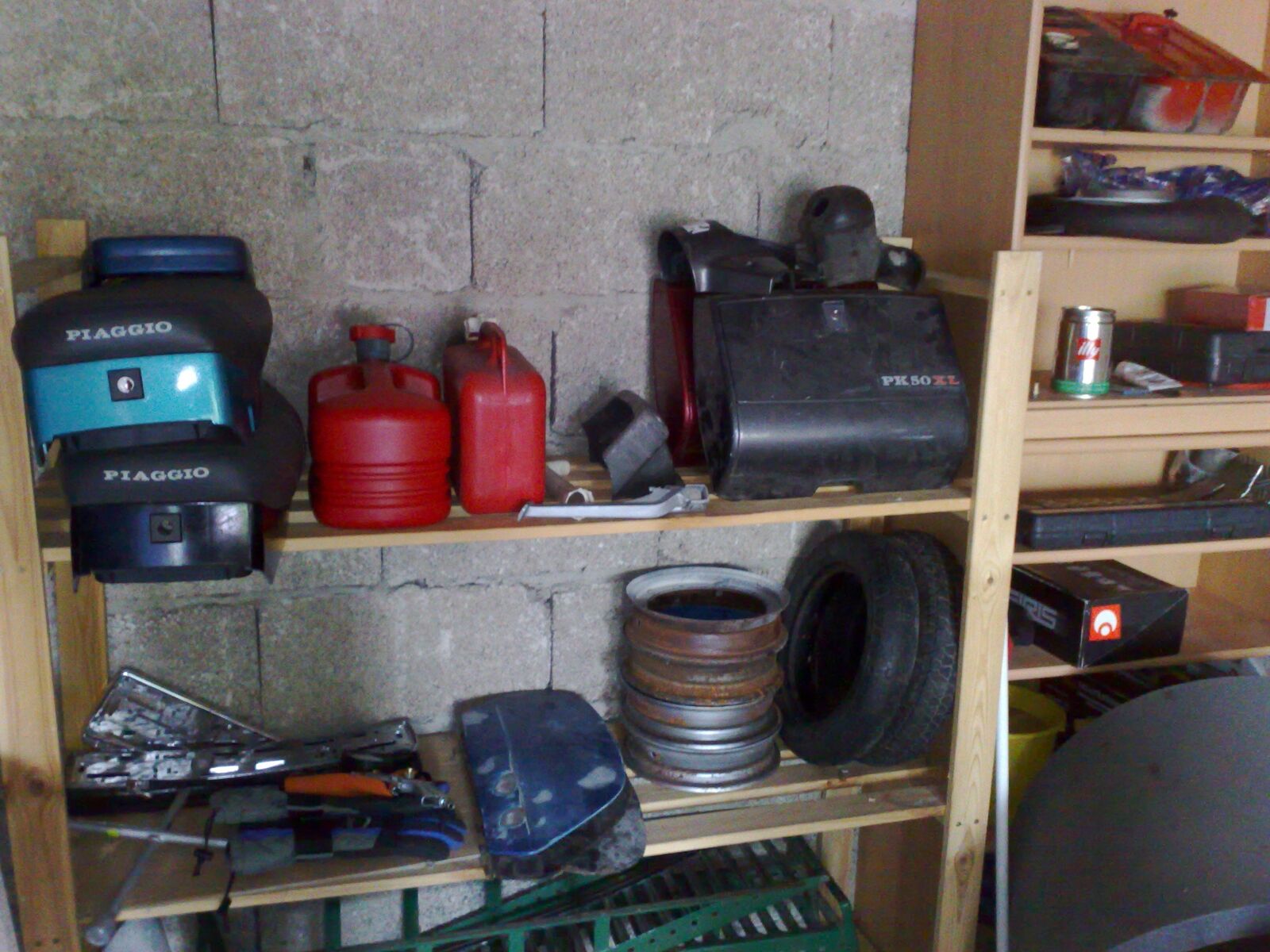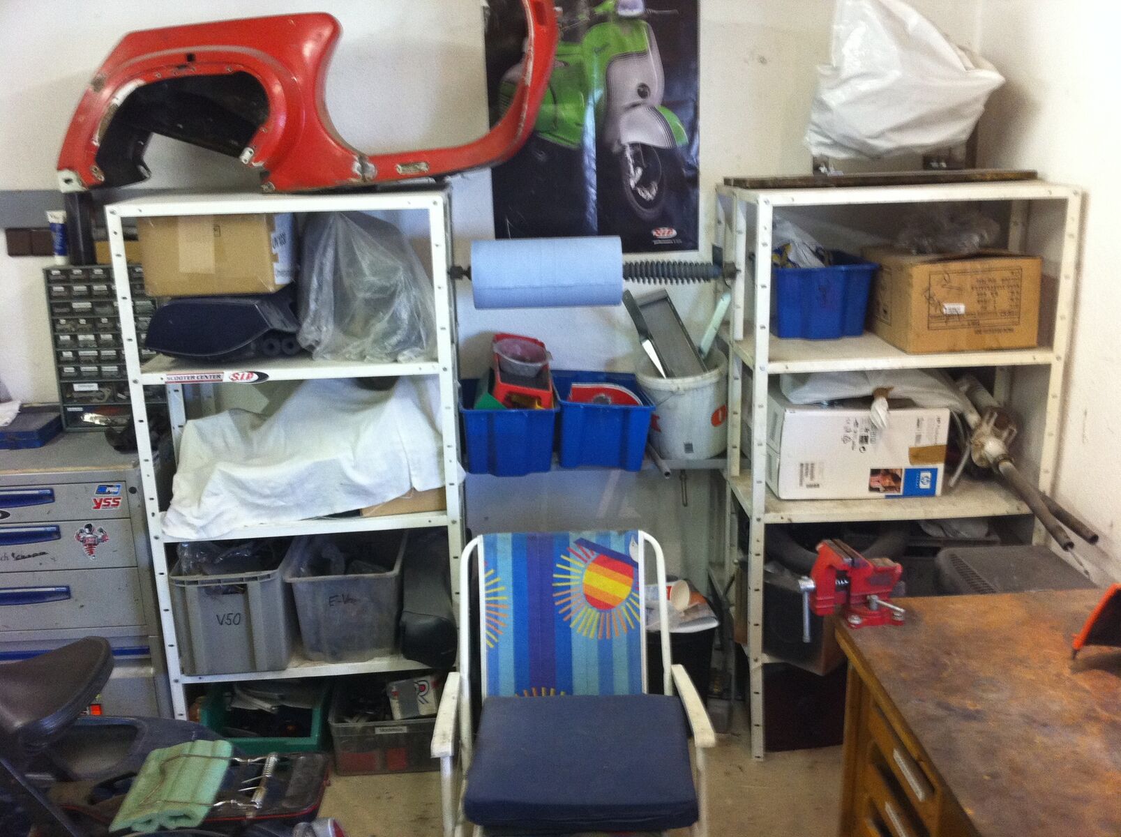 Ist quasi eine 3 geteilte Werkstatt, einmal Rein der Werkraum mit dem ganzen Werkzeugkrempel. Dann hab ich mein Teilelager und nebenan noch den Rollerlagerraum.