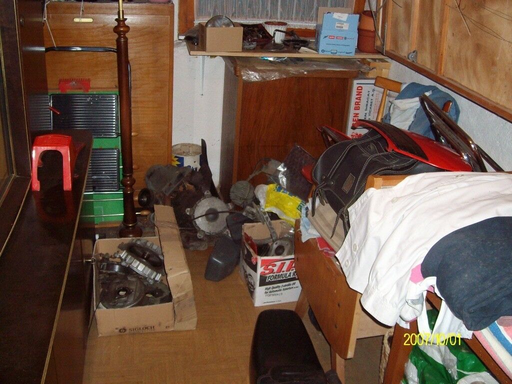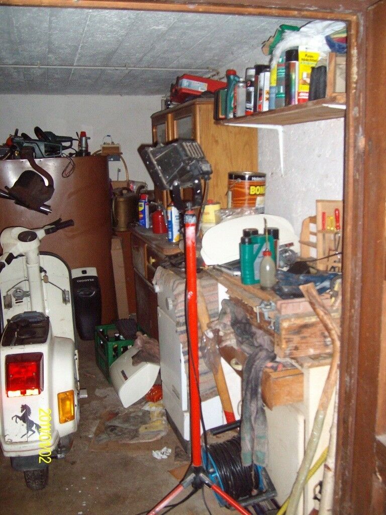 Bei mir regiert noch das Chaos! Hab insgesamt 3 Garagen in nem Umkreis von 20 km... und die auf dem Bild ist wirklich noch am aufgeräumtesten. Das hat aber ab 1.2. ein Ende!!! Hab nach fast 2 Jahren suchen ne einigermaßen passende, bezahlbare Halle gefunden! Sind 100 qm für 80 EUR + Strom und Wasser.
