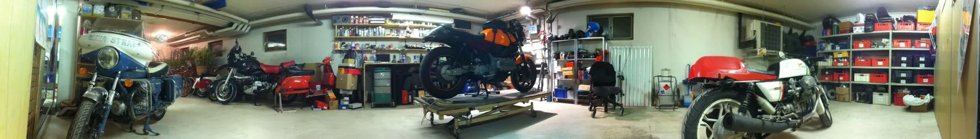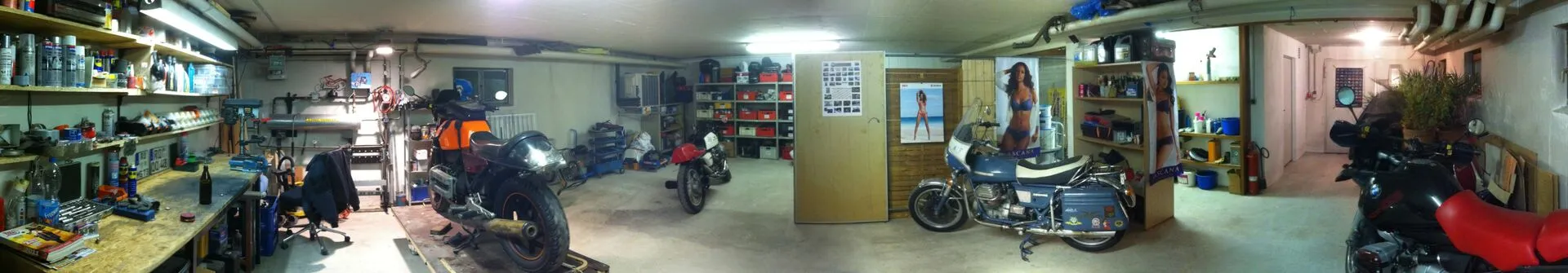 auch ich werd hier mal n kleinen privaten Einblick geben. Bei uns im hohen Norden aufm Dorf ticken die Uhren ja immer n bischn anders vor allem wenns um Platz geht 2-) Die Halle ham wir zusammen mit 5 Leuten, überwiegend sind das Kfz Schrauber, Kumpels oder wahnsinnige, aber nix desto trotz durfte ich dort gern mit meinen Vespen einziehen :rolleyes: Ausgestattet is die Halle wie ne echte Werkstatt, vernünftiges Werkzeug ,Hebebühne, Motorheber....naja was man halt so brauch oder auch nich brauch :whistling: Inhalt der Halle gehört komplett uns und die Halle zur Miete (nicht teurer als ein Abend im Monat in der Kneipe zu versacken ;) ) Der perfekte Hobby Spielplatz für Männer und vor allem immer ein von Frauen akzeptierter Grund von zu Hause weg zu bleiben :love: . (Gott hat den Frauen ja hier oben zum Glück Pferde gegeben :D )