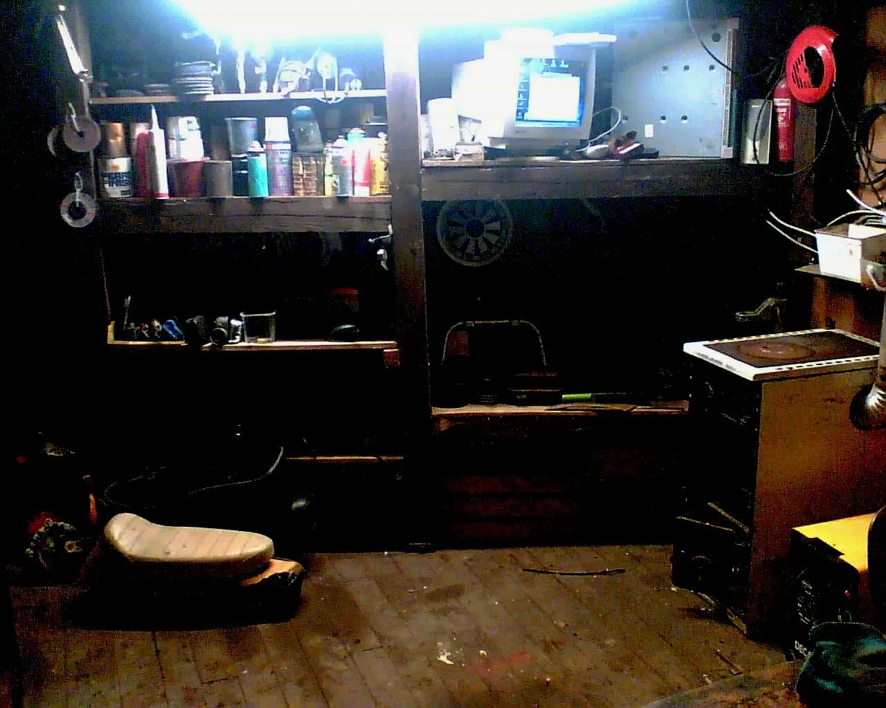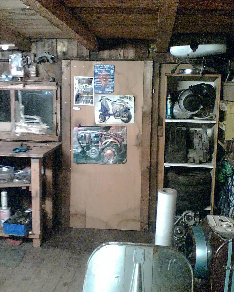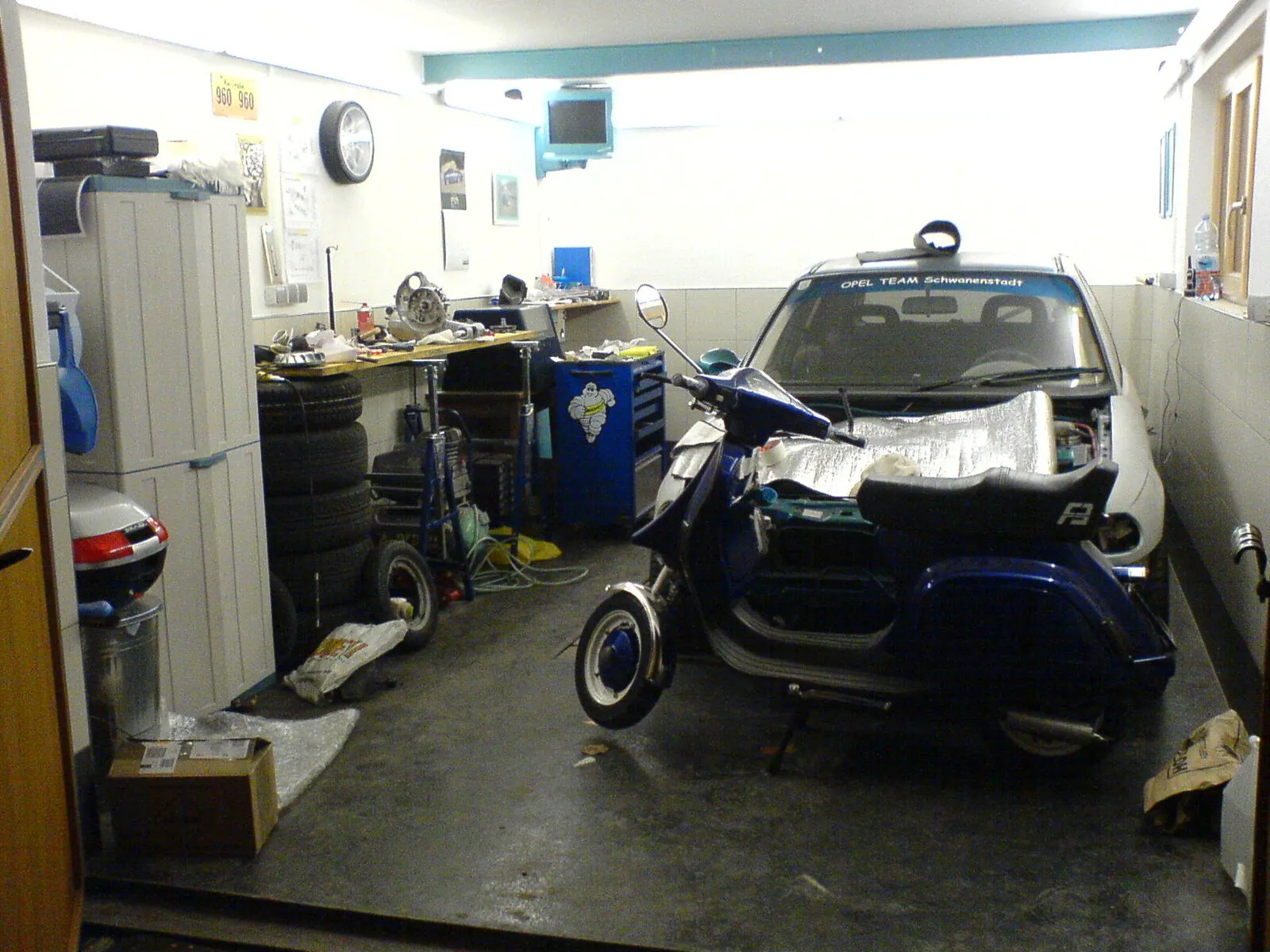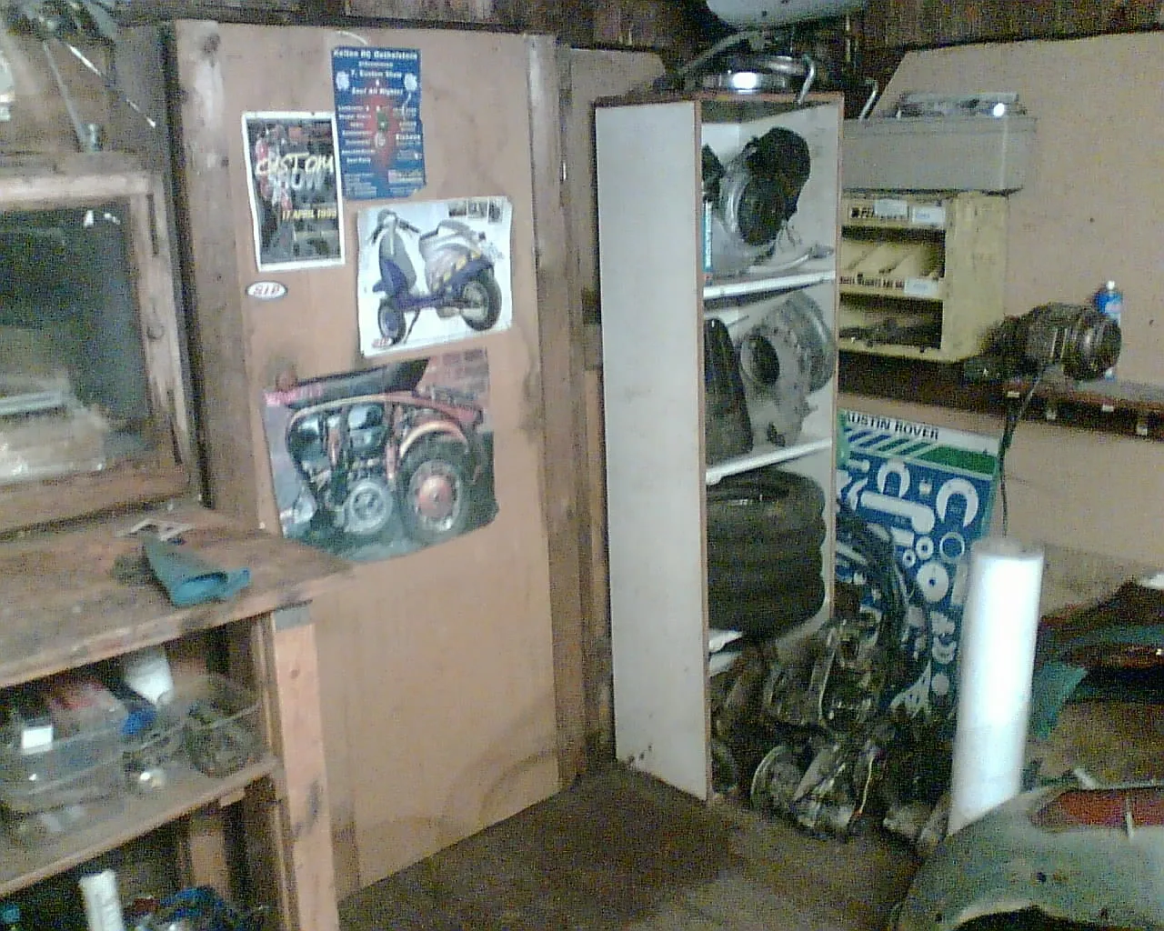 am Anfang hab ich immer im Keller meines Elternhauses geschraubt >>wurde aber bald zu eng und diverse ÖL/benzin flecken veranlassten mich den keller zu räumen ![]()