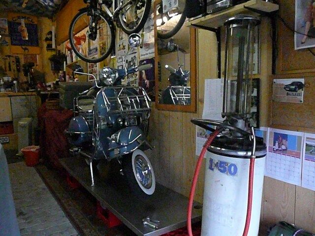 .Kurzer Hand wurde ein Kinderzimmer mit Außentür zum Hof als Garage umfunktioniert.Da werden wir ab nächster Woche 2 PXen zerlegen, lacken und die Motoren ein wenig umgestalten...