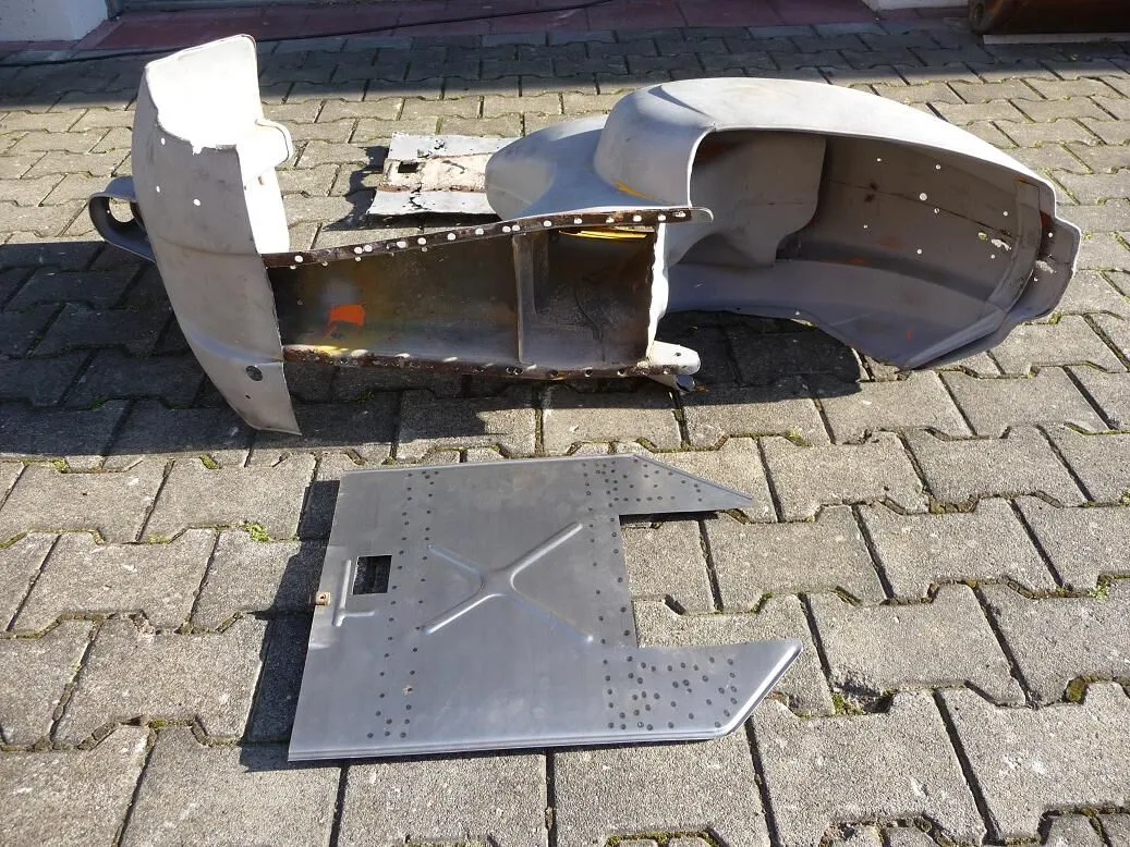 So es gibt was neues,da ja die vordergabel ja quasi Schraublöcher abgebrochen waren,und eigentlich mein Freund da rumschweisen wollte,kqam ich durch zufall an einen der auch alte Autos und Mopeds restauriert.Und im gespräch sagte ich ihm das ich hald nen Scheunenfung gemacht hatte..da sagte er er habe vor langen jahren auch ne Vespa gehabt,die er aber in Teilen weiterverkauft hat,aber die vordergabel noch hätte..und genau das Teil hatte er gefunden und mir vorbeigebracht..Super sogar mit [lexicon='Bremstrommel',''][/lexicon],für die 10er offenen Felgen,die ich drauf machen möchte..auch dämpfer und die schraublöcher f. Koti waren bestens....
