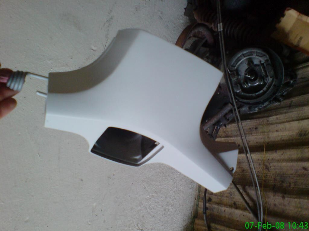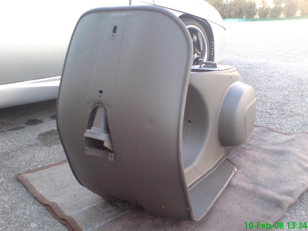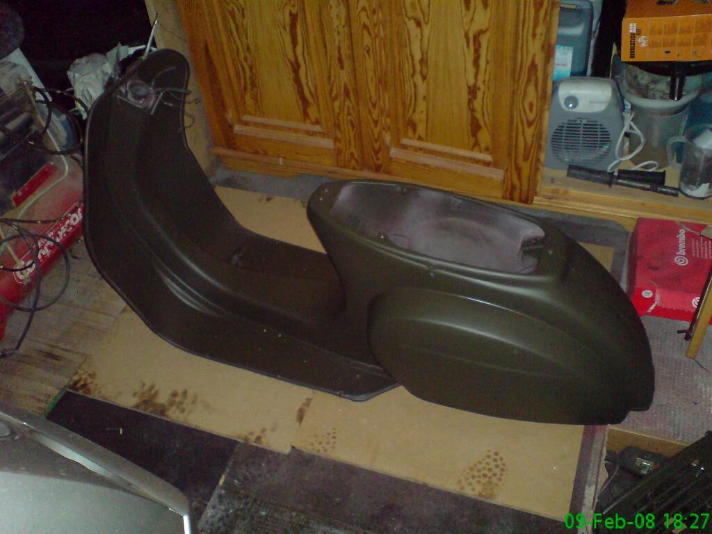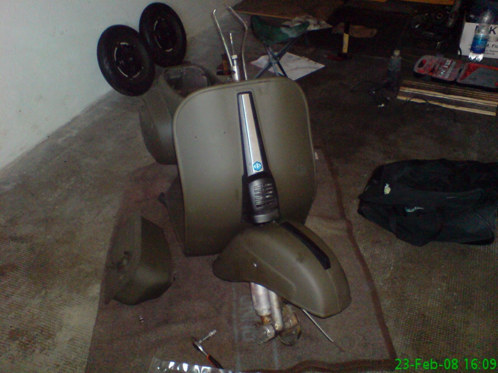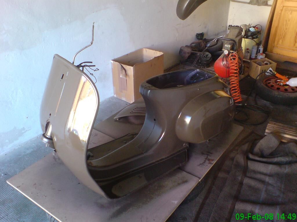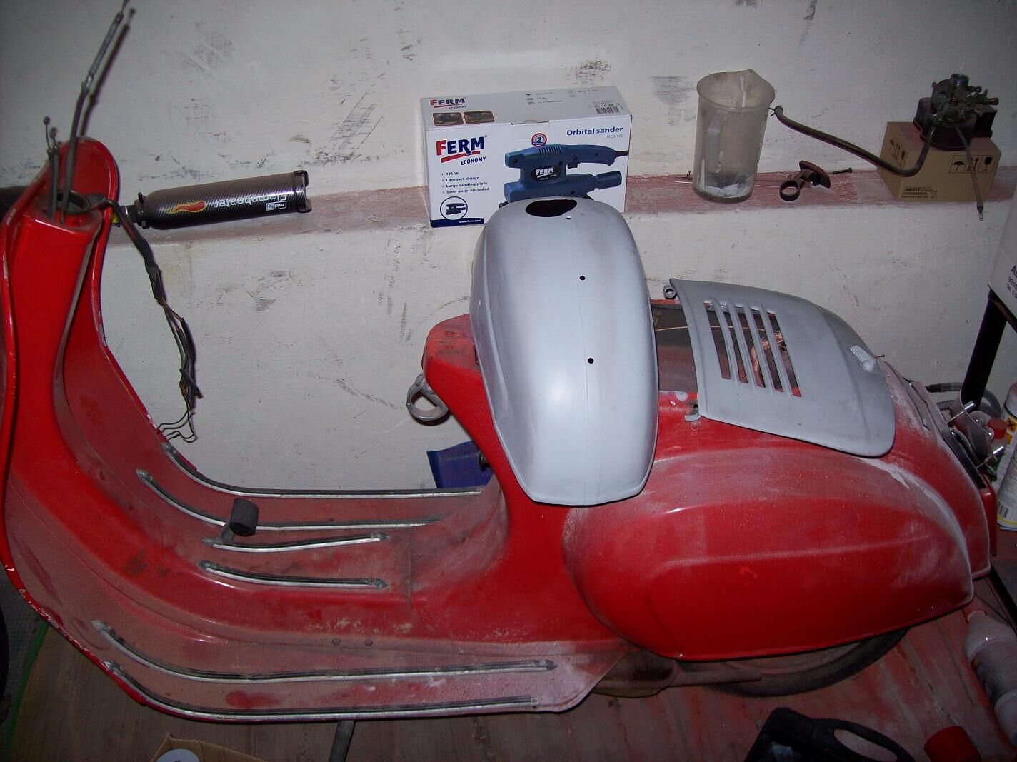 Hi hab seit 1998 eine Vespa 50 Spezial von meinen Eltern. Ich fuhr diese bis 2000 danach stand sie eigentlich nur noch bei mir rum. Nun ist es Zeit ( Durch Kollegen angespornt ) die Spezial wieder fit zu machen. Karosserie ist noch soweit i.O. Hab alles ausgebaut, angeschliffen, gefillert und heute die erste Schicht Lack draufgeschmissen.... nun fehlt nur noch der Motor, dort wird ein 102ccm Polini Zylinder, 19/19Vergaser, 2,86 Primär usw. verbaut... dort hilft mir auch ein Kollegen (Spike05) da ich ja in der Hinsicht noch ein Newbie bin....einen "neuen" gebrauchten Lenkerkopf habe ich mir gegönnt, da mein originaler leider an der "schwachstelle" Kupplungshebel audgebrochen war...