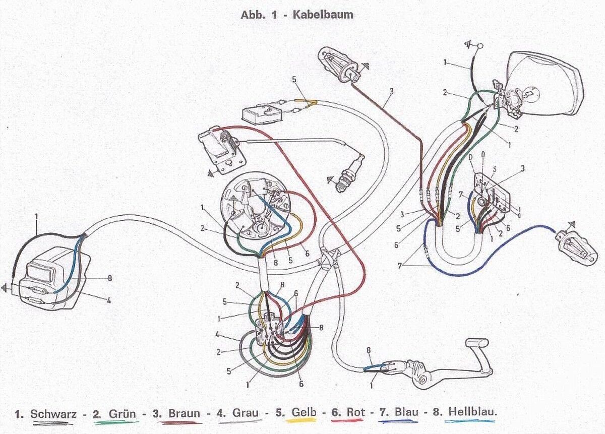 Nachdem ich das rote Kabel (führt glaub ich zum Unterbrecher) abgeschraubt hatte, und blau (das blaue Kabel, das von der LiMa kommt) mit schwarz kurzgeschlossen hatte, ging das Rücklicht nicht mehr, was auch zu erwarten war. Das Problem mit der Zündung war nach wie vor vorhanden.
