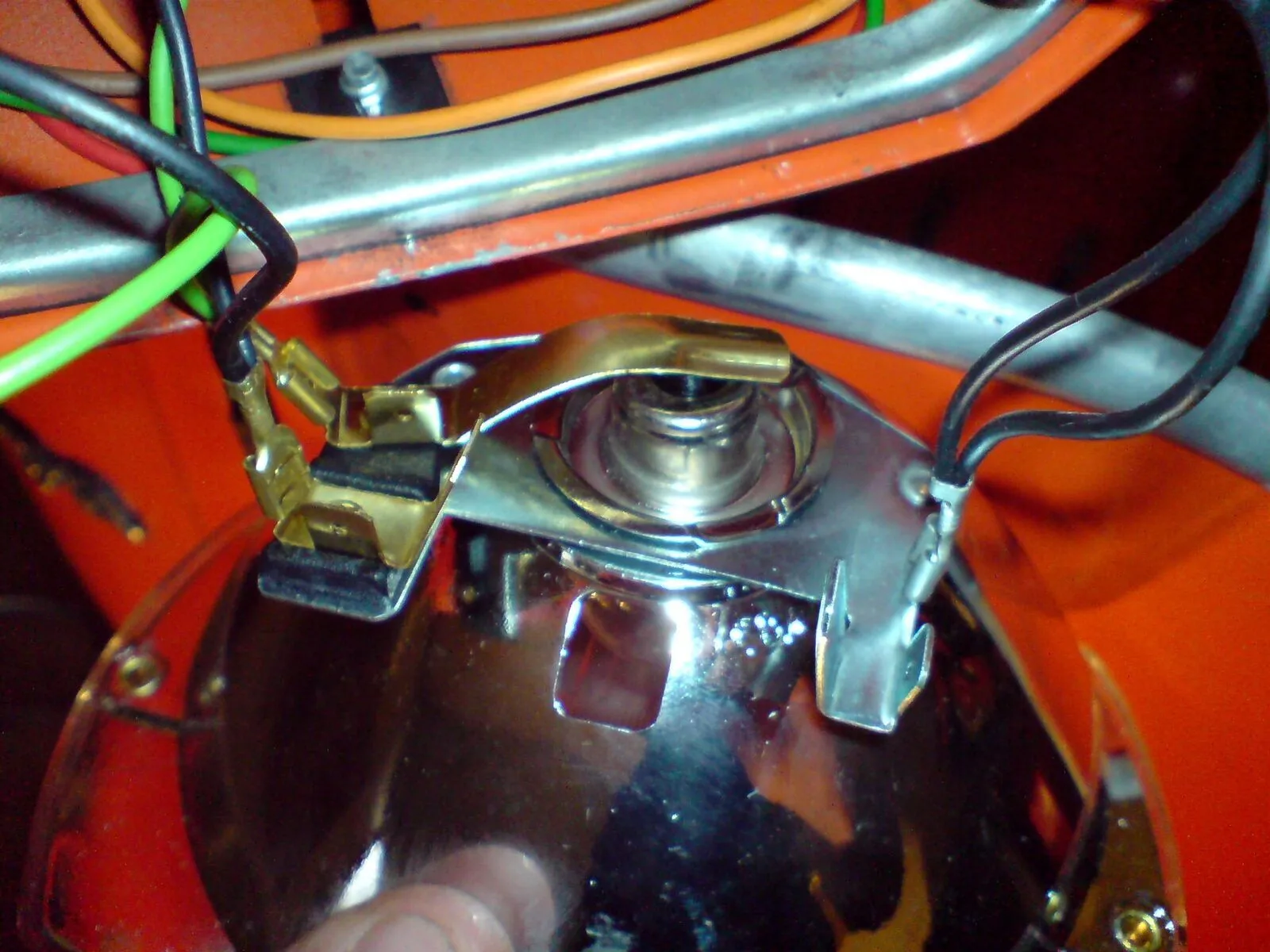 ALTER SCHEINWERFER: das linke bild ist der altescheinwerfer: das linke untere schwarze kabel kommt aus dem kabelbaum. das linke obere schwarze kabel kommt aus dem lichtschalterstrang. das rechte grüne kabel kommt aus dem kabelbaum.
