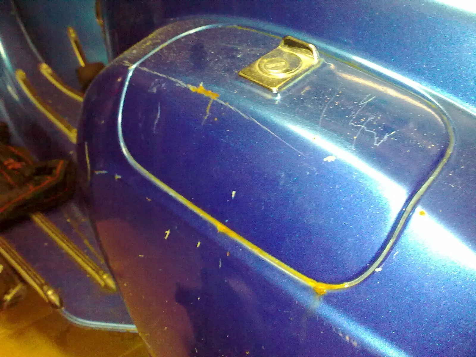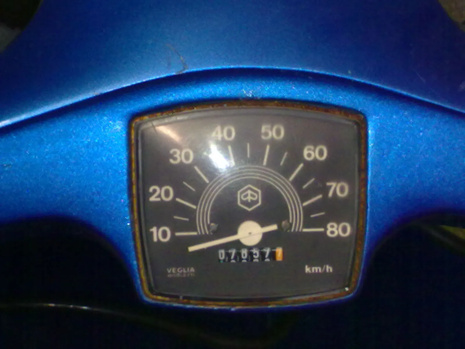 - Der Roller ist in Blau-Metallic lackiert, der Lack ist soweit ok, hat aber natürlich durch die relativ unsachgemäße Lagerung in den letzten Jahren ein paar Macken und einige Rostflecken abbekommen. Ist natürlich nicht der Originallack.