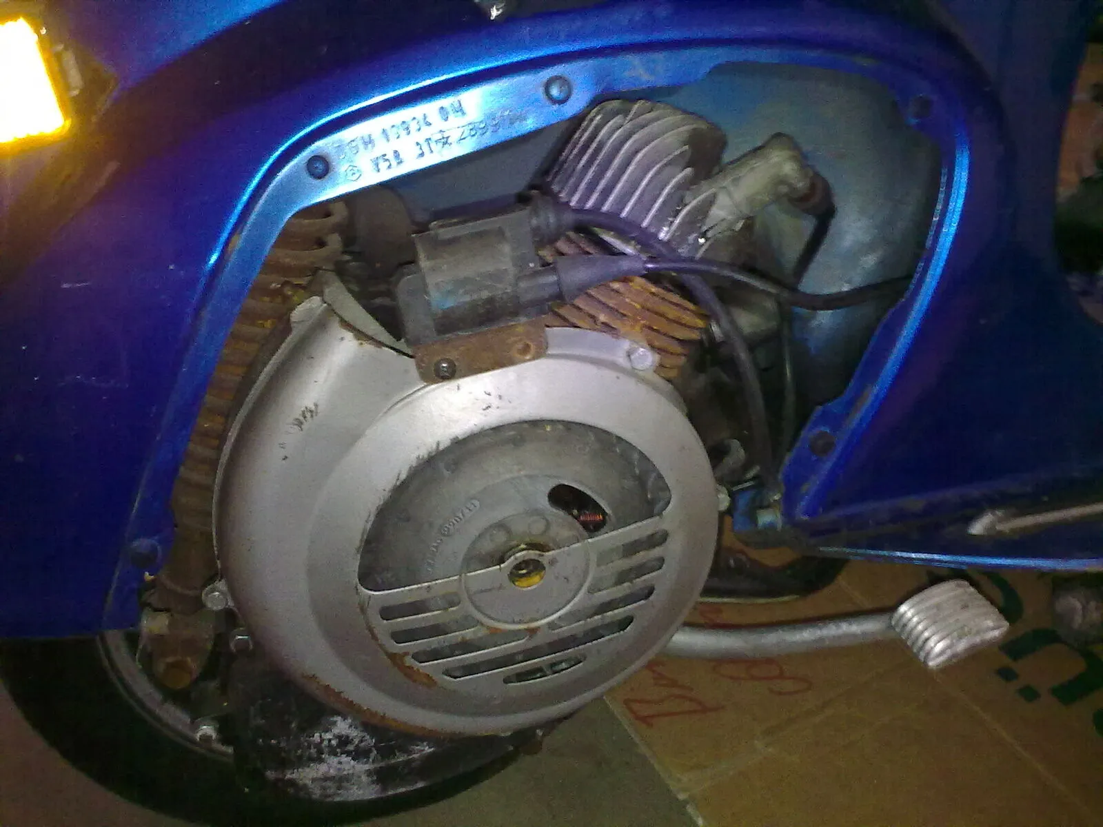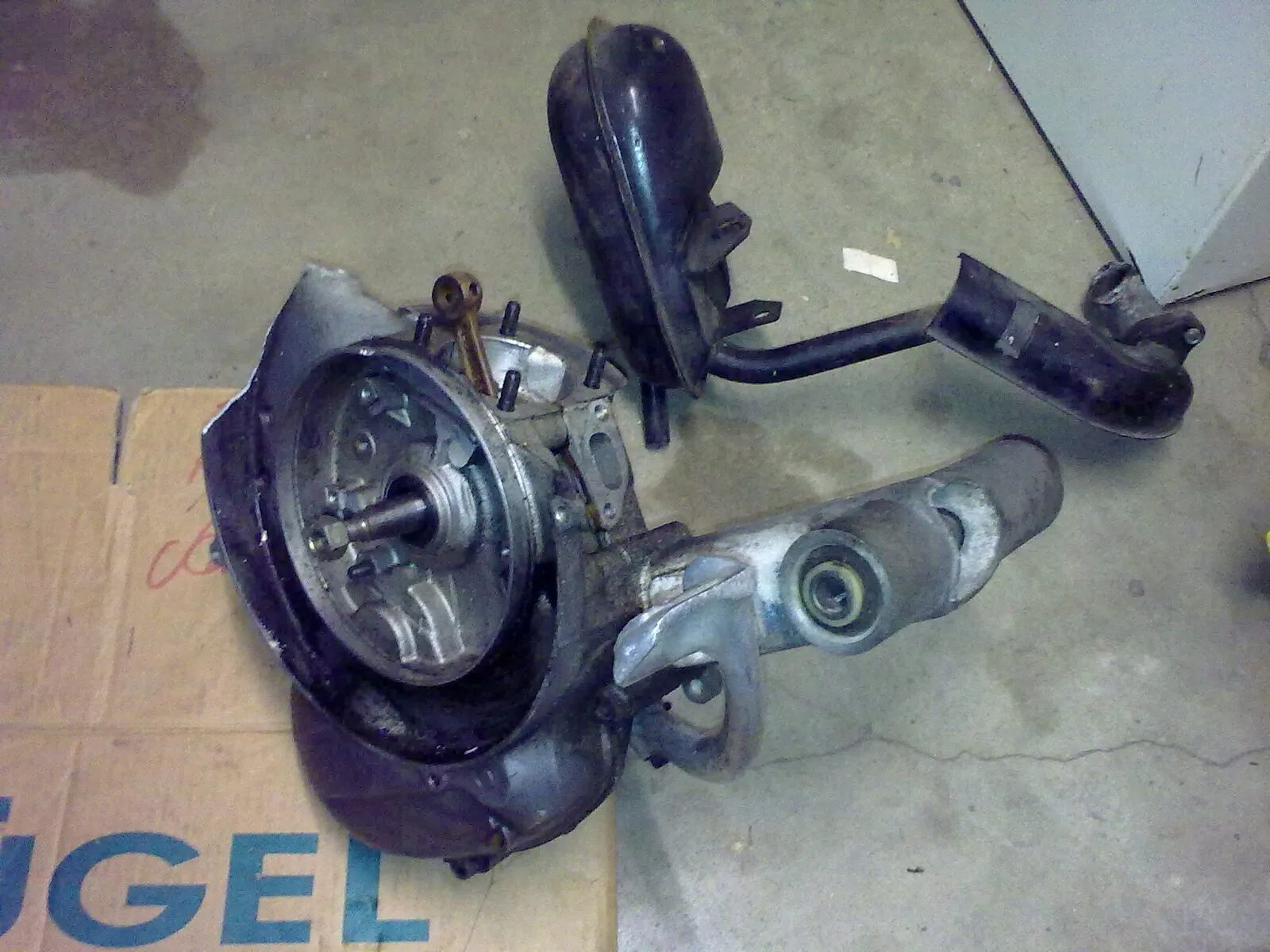 - Zusätzlich wären im Paket noch ein zweiter Motorblock ohne Polrad, ohne Zylinder und ohne Vergaser. Ansonsten aber wohl vollständig, denke ich. Keine Ahnung, wo der den her hat und warum. Der Roller hatte mal einen Kolbenfresser, vielleicht ist das der Grund.)