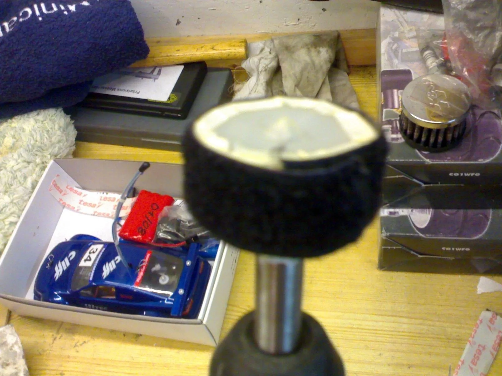 Um den Tacho runter zu drehen hab ich aus einem dicken Bohren glaub durchschnitt ist 3cm gewesen ein klebeband außenrum geklebt und von Tesa einen schwarzen Klebestreifen genommen der ziehmlich weich ist um die Zahnräder nicht zu zerstören