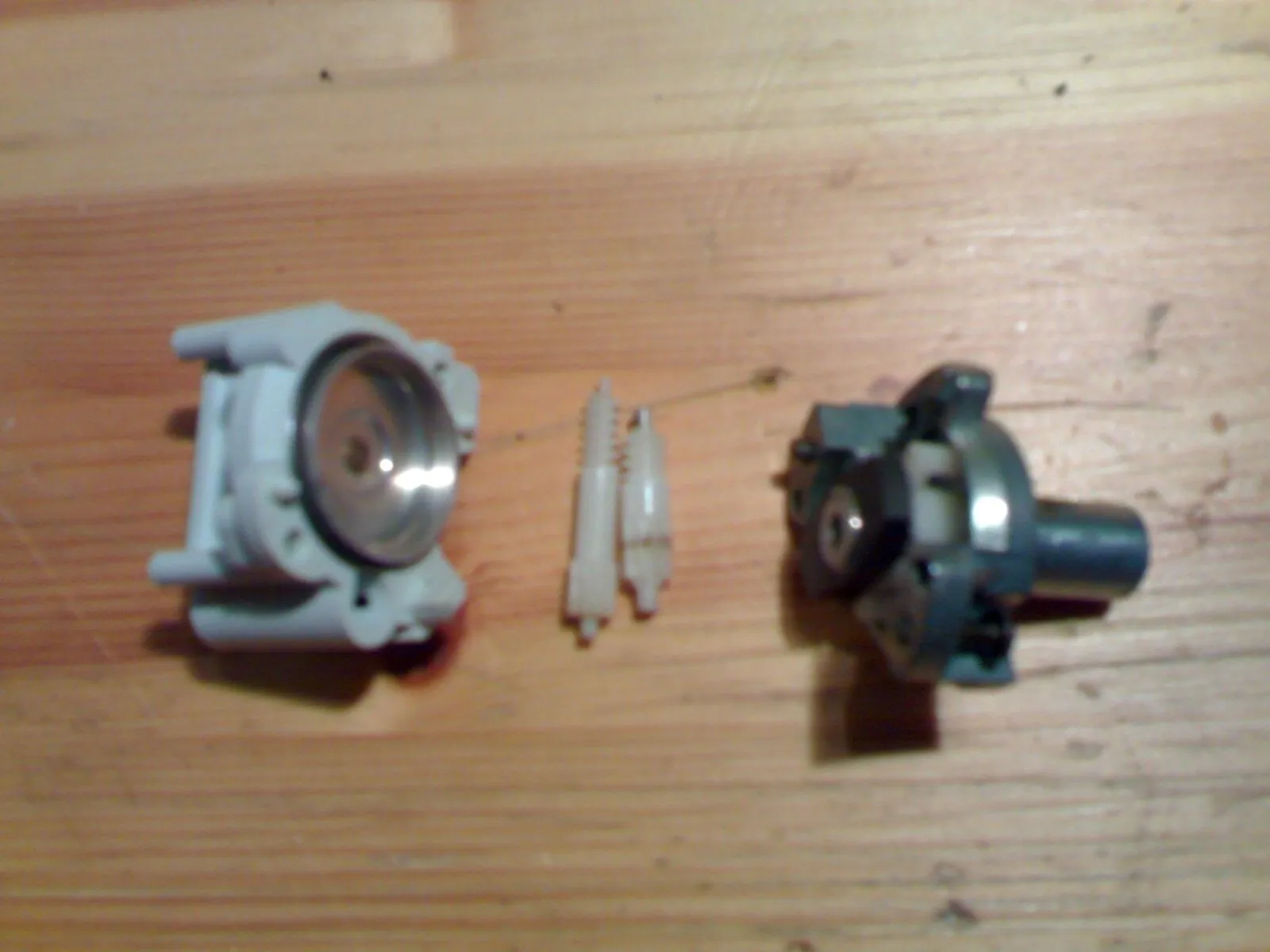 Dann Vorsichtig auseinander ziehen aber die Feder mit dem Metal vom Magnet gleich abnehmen wenn ihr mit euren Fingern hinkommt merkt es sofort wenn ihr es ausseinder zieht. Aso nicht erschrecken wenn euch zwei weiße Plastikwellen rausfliegen die Dicke kommt an den Magneten und und der lange an das Teil wo die Feder ist findet es bestimmt wieder und falsch herum kann man es nich zusammen bauen