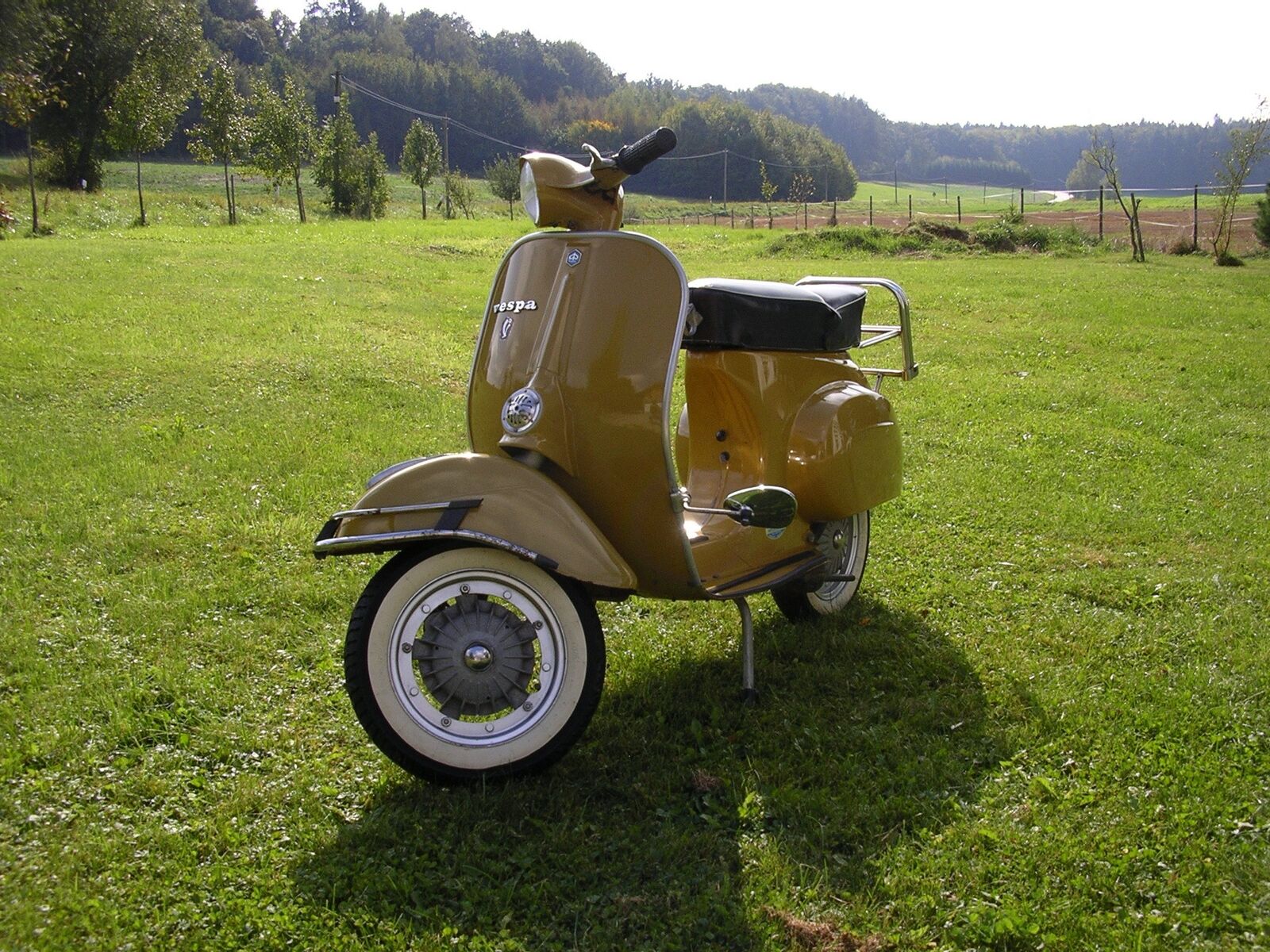 Hab einiges dran gemacht, aber nur den Originalzustand aufbereitet und erhalten. Lack original, Gummis neu, Vergaser gemacht, Benzinschlauch neu, neue Schlappen, Sitzbank neu gepolstert, Radringe lackiert, Auspuff lackiert, lüfterraddeckel lackiert, neue Kerze, etc, etc. Tank ohne Rost. Flugrost an den Chromteilen. Geht mit Neverdull schön weg. Vespa springt sofort weg und fährt sauber.