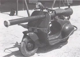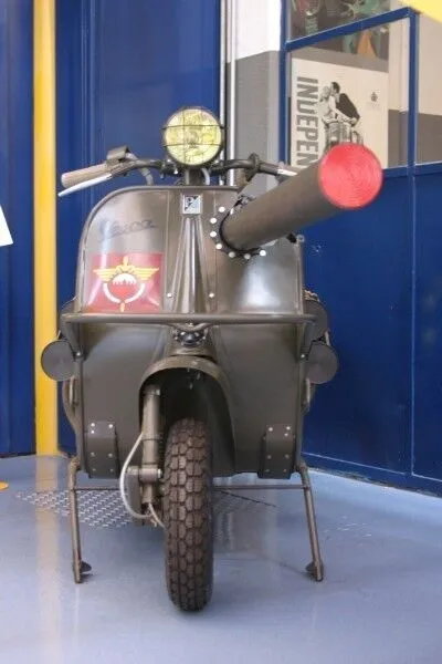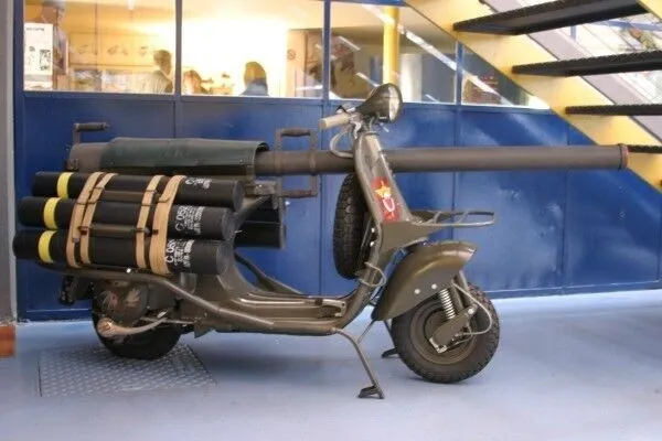 Der Fahrer dürfte sich zumindest sehr bequem gefühlt haben auf dem Sitz. Haben die das Rohr durch ein Loch im Bauch geführt oder so? Außerdem wird die Zielgenauigkeit während der Fahrt wohl ziemlich schlecht gewesen sein, es sei denn das Ziel war 5Meter unbeweglich vor einem. Im Stand wird das schon eher was gebracht haben, aber da hätte man auch eine normale Panzerfaust schultern können ohne die Vespa dafür zu verbasteln.