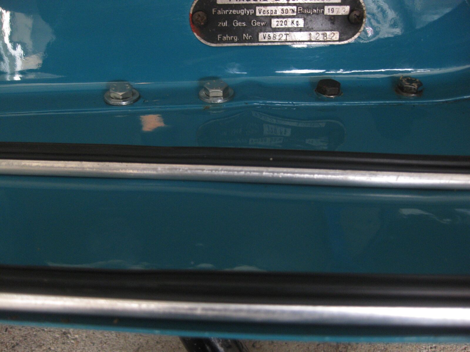 die Delle entsteht wenn ich die Vespa aufbocke, der Ständer hat dort das Blech nach oben gedrückt.