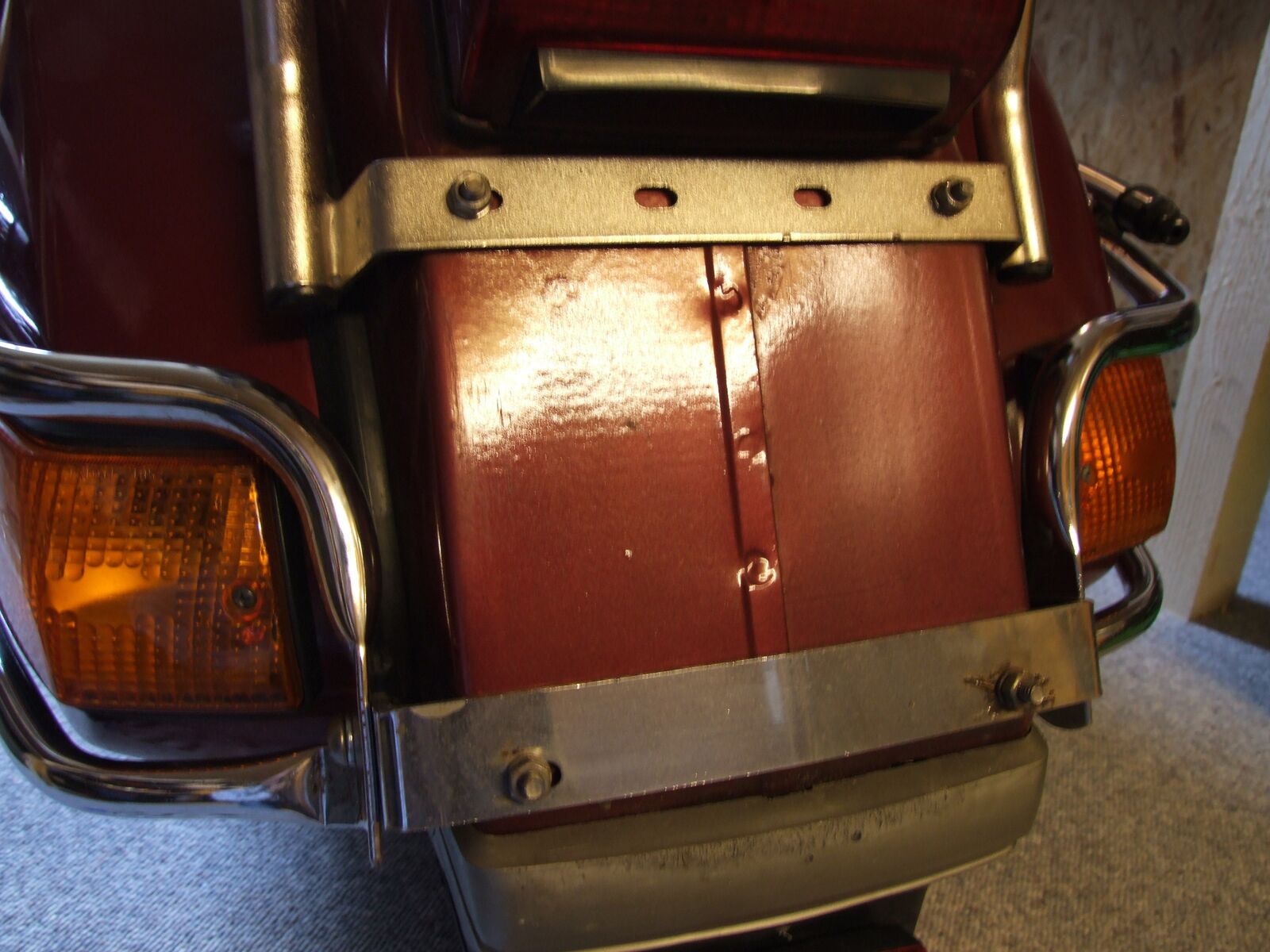 die Sturzbügel hoch machen und die Seitenhauben abnehmen kann. Jedoch befindet sich der Gepäckträger im Schwenkbereich.
