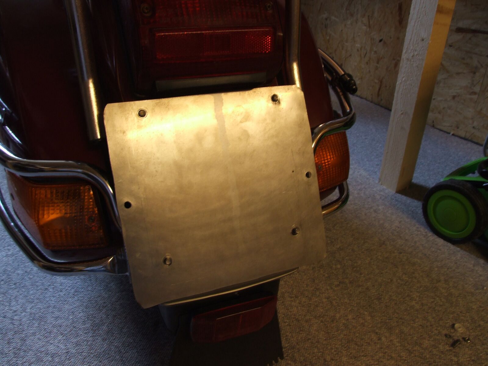 Nun passt die Halterung hinten nicht mit den Vorgegeben Löcher in der Vespa überein. Und meine alte schwarze Halterung hinten passt