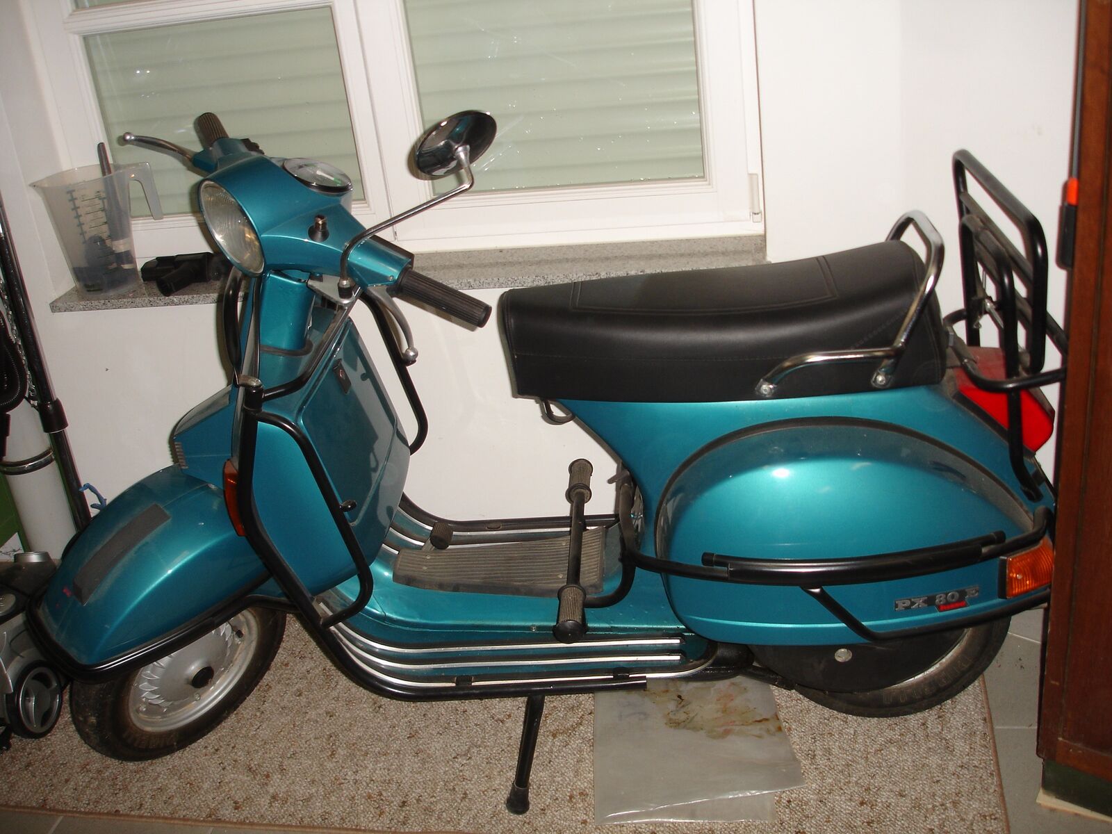 Eine Vespa px 80 die gerade mal 1400km auf der Uhr hat. Zustand und Lack sollen auch top sein !?